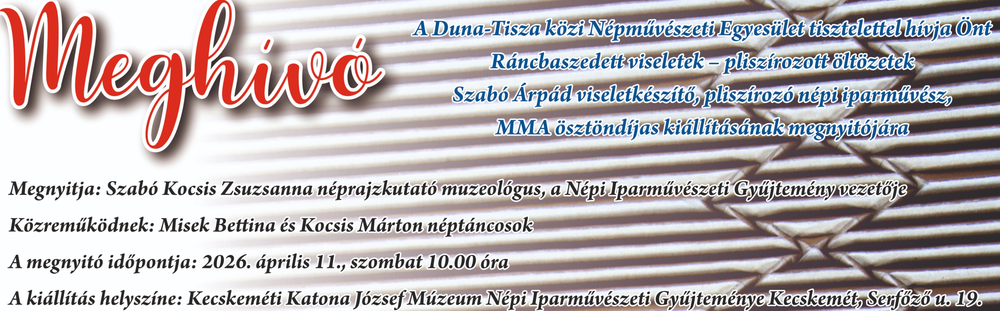Ráncbaszedett viseletek – pliszírozott öltözetek, kiállítás és viseletkészítő szakmai nap