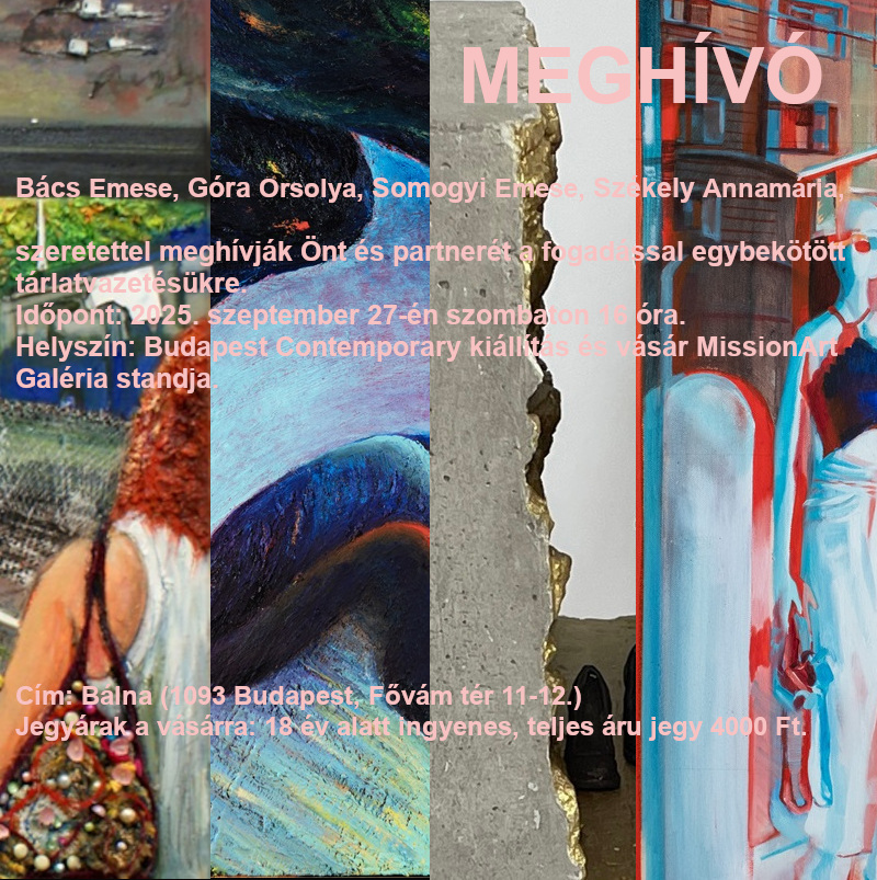 Az idén a MissionArt galéria négy nő művészt mutat be a művészeti vásáron: Góra Orsolyát, Székely Annamáriát, Somogyi Emesét és engem.