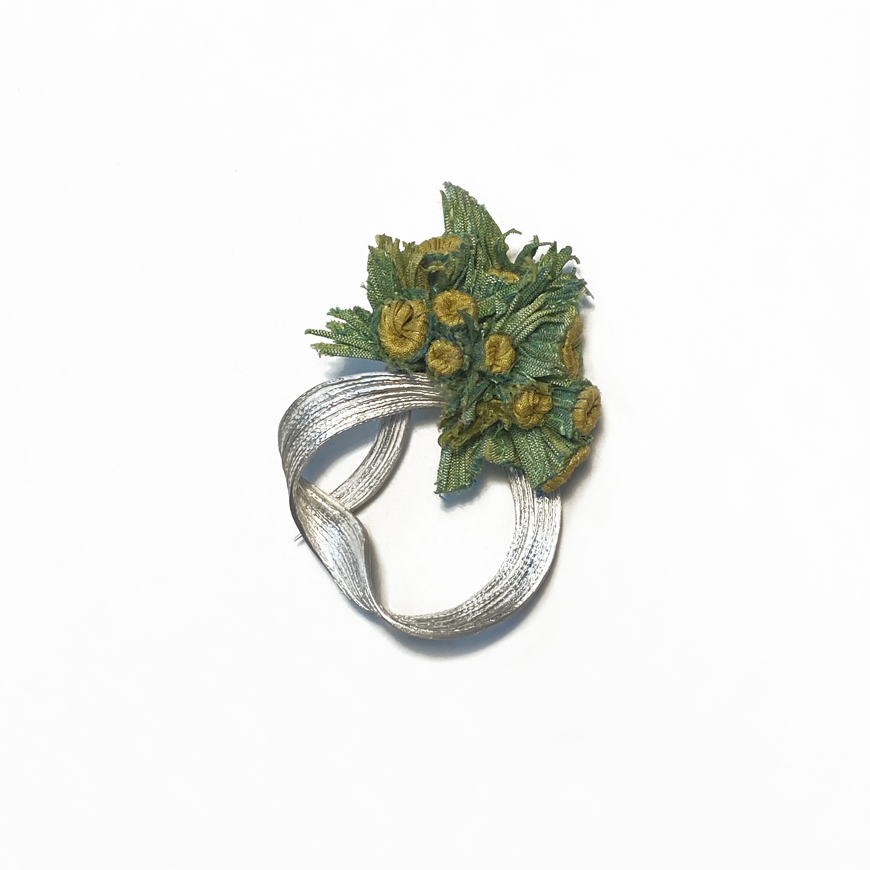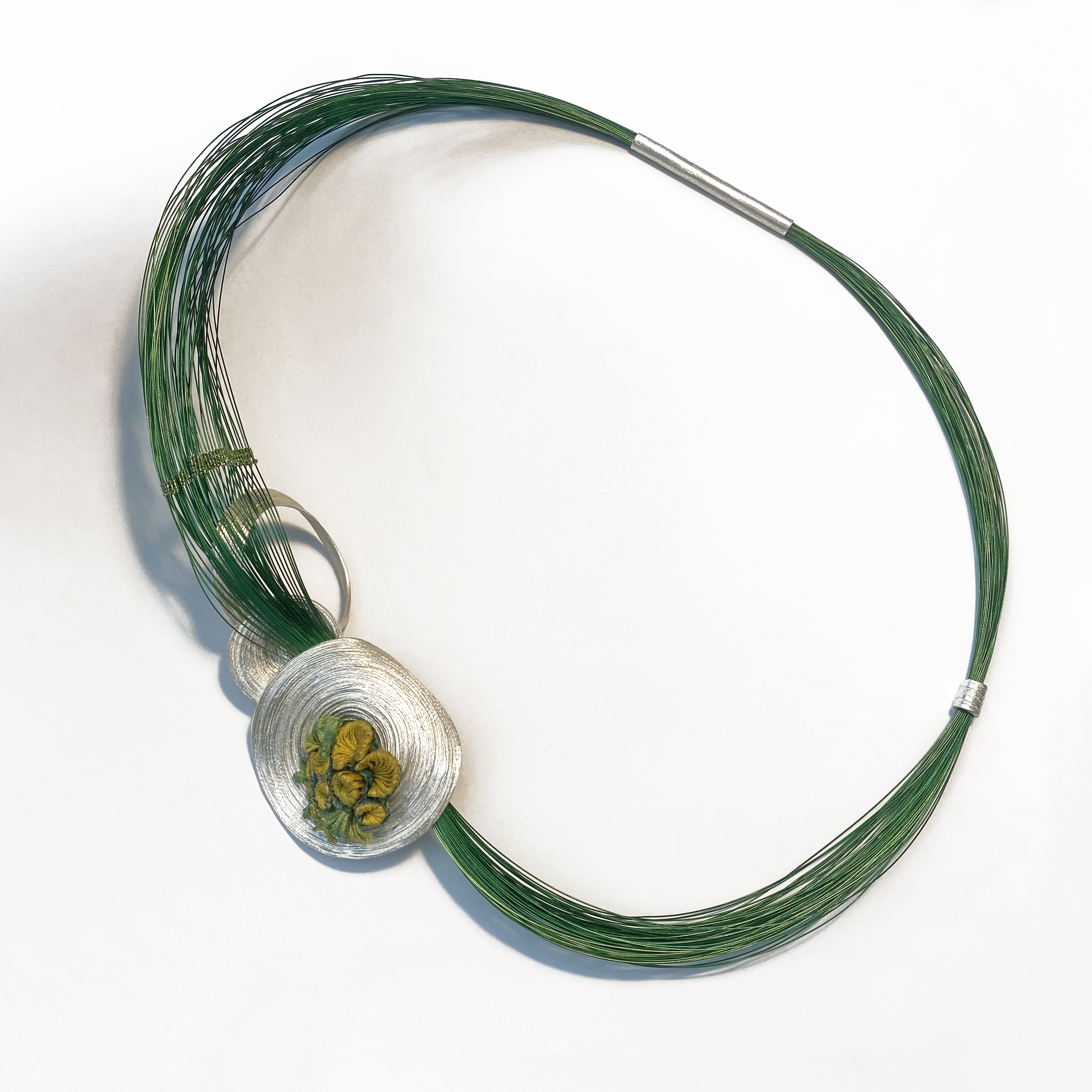 Az ékszer szekció magyar anyagába kapcsolódnak Földi Kingával közösen készített ékszereink, Moszat nyakék és Moszat bross. Az ékszerek piézett selyem és ezüst részeinek ritmikus felületei dinamikus egésszé forrnak össze a tárgyakon.