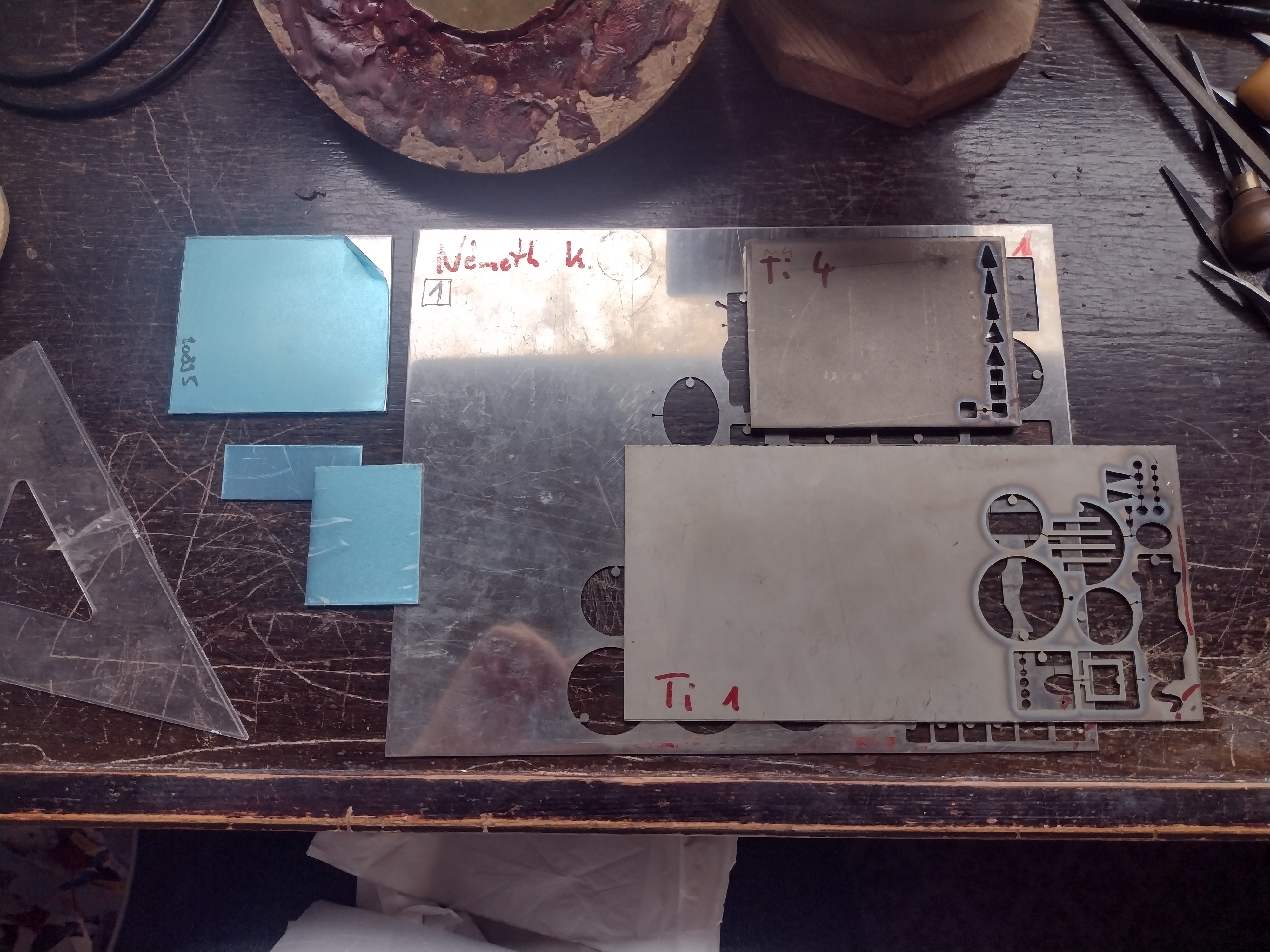 A mellékletben díszítővésés tervezéshez készült kísérletekből láthatóak példák, valamint a vágásra előkészített lemezek.