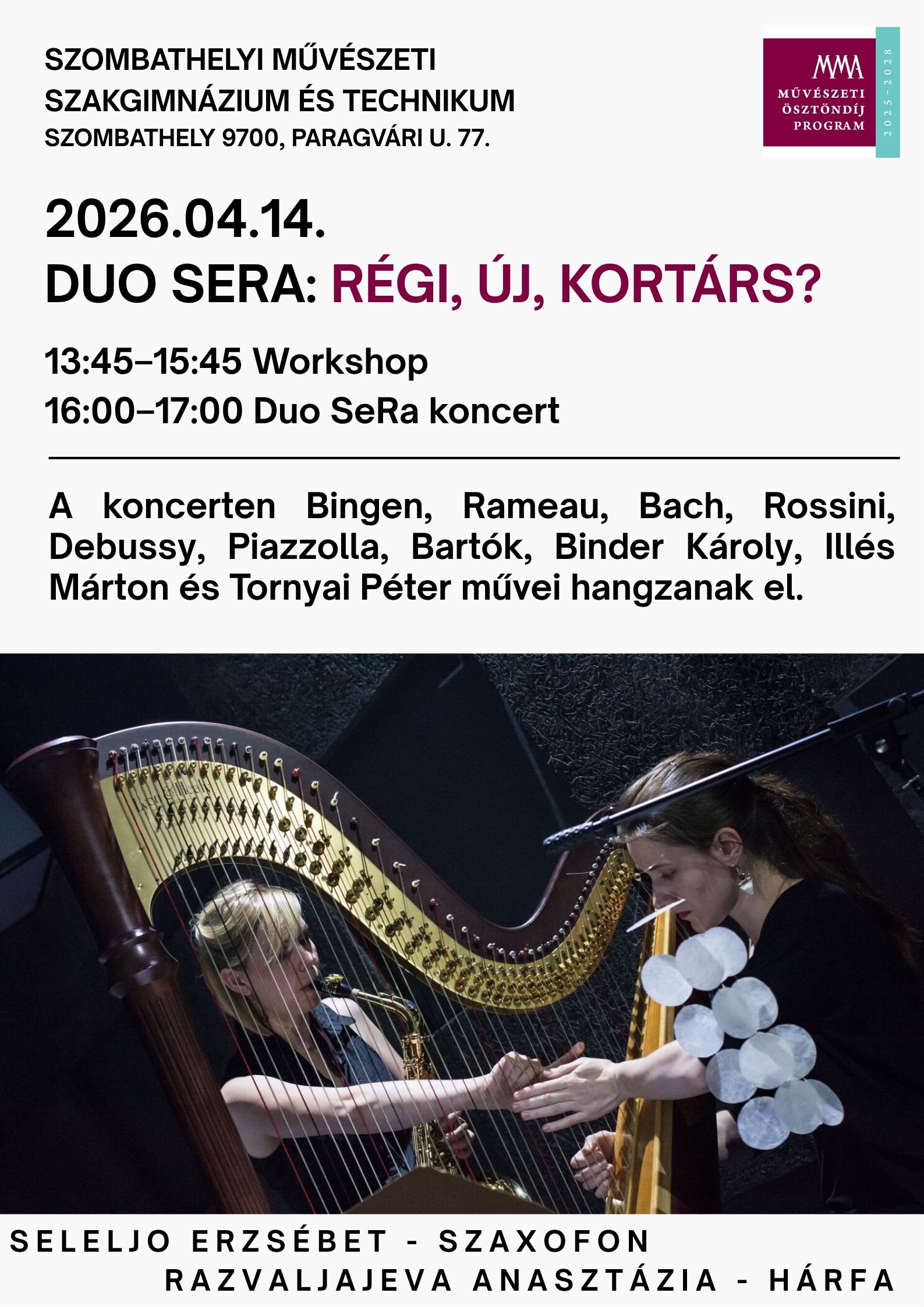 13:45 Workshop 16:00 Duo SeRa Koncert a Szombathelyi Művészeti Szakgimnáziumban és Technikumban