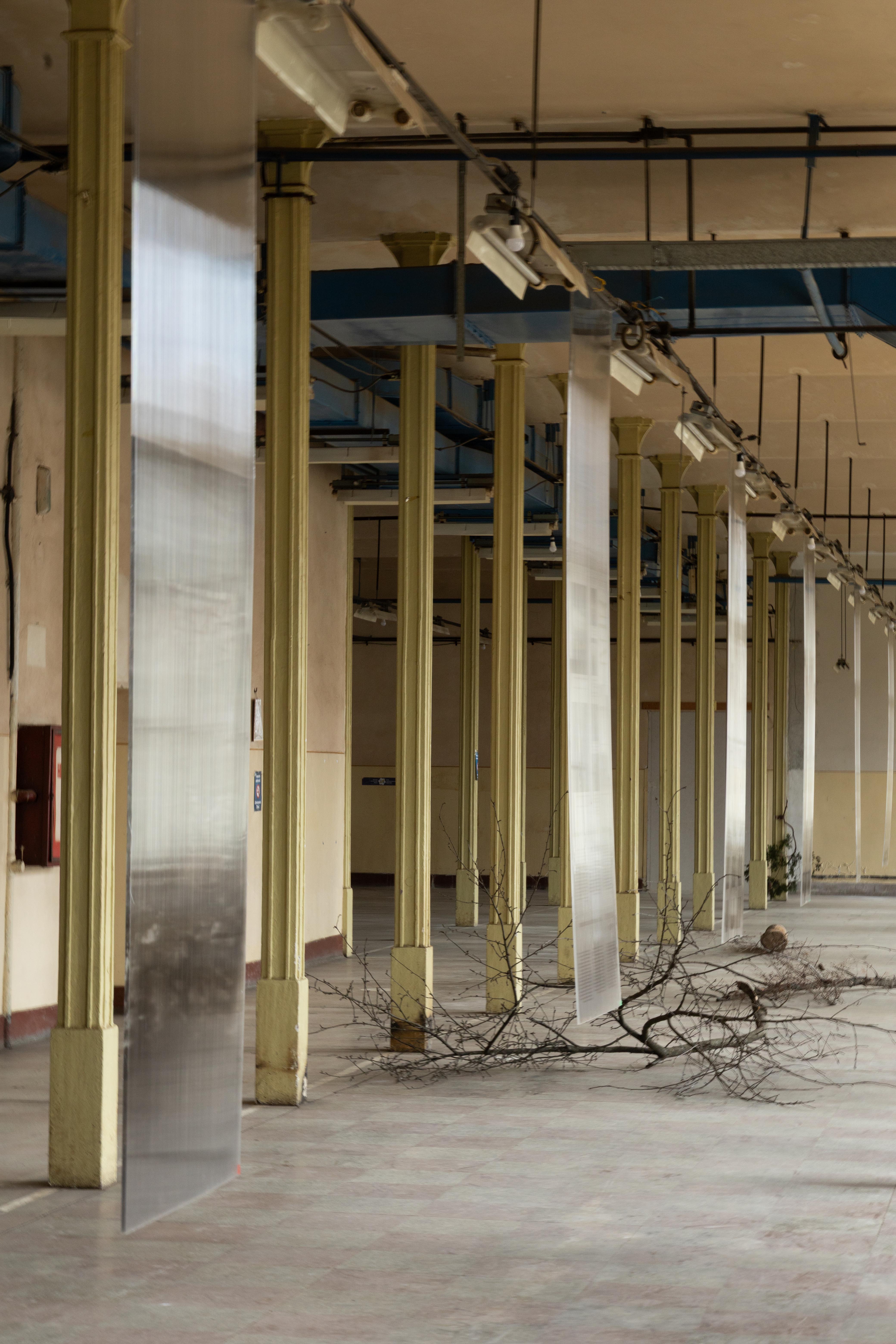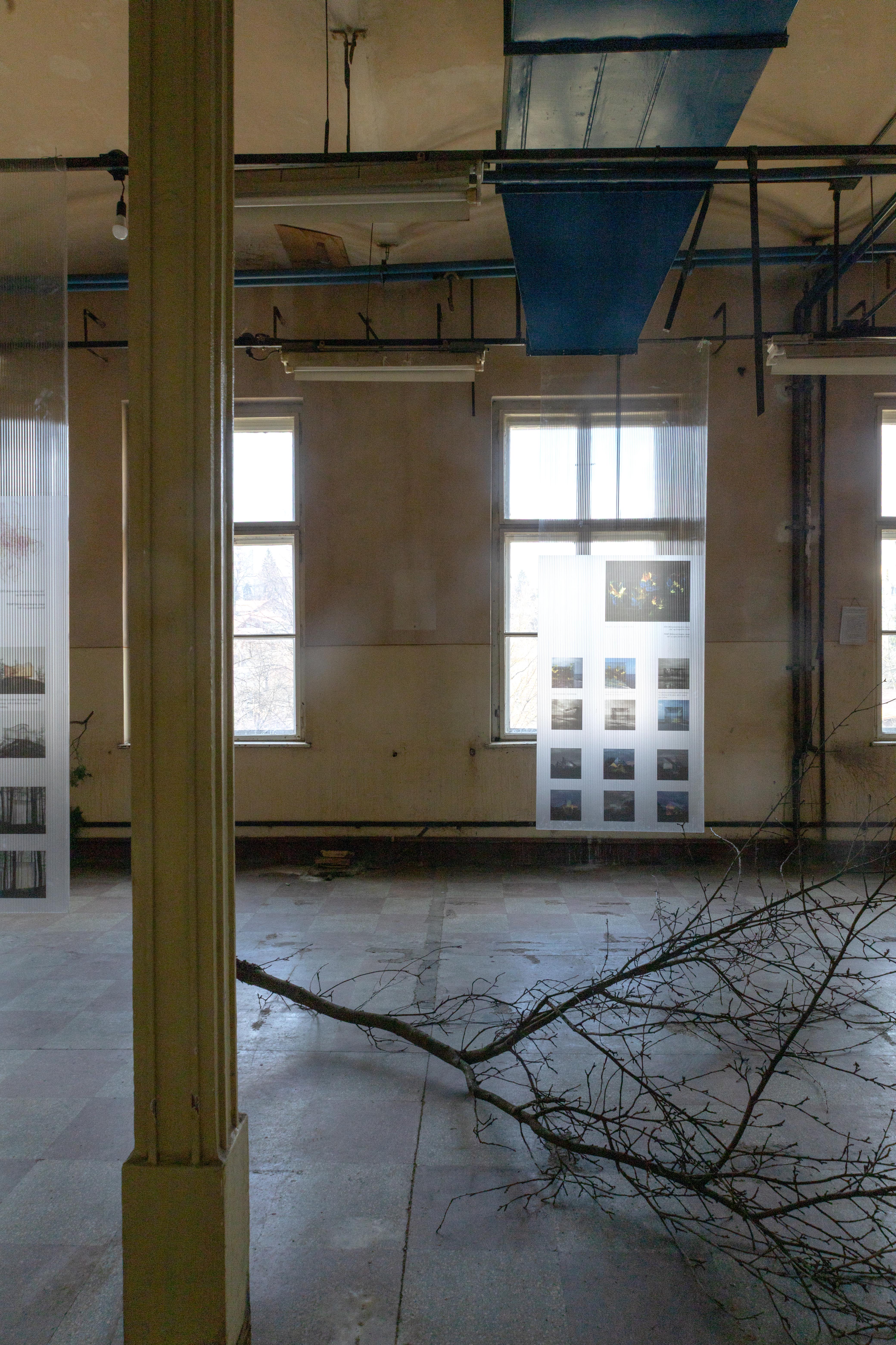 A tablók síkbeli kompozíciói szemmagasságból illeszkenek az ablakosztásokhoz, és tervezett párosításokat hoznak létre azokkal a térben sétáló szemlélő számára. A természetből származó elemek, mint például a faágak és a fatörzsek téri pozíciói arra ösztönzik a látogatót, hogy azok kerülgetésével különböző szemszögekből és távolságokból tekintsen a panelekre, és azokat a fény és a tükröződés változó viszonylatában tapasztalja meg. A csupasz faágak vázai a tér alapvető ipari hatására reagálnak. A cél az volt, hogy minimális beavatkozással a lehető legerősebb szenzoros hatás jöjjön létre, amely a teljes hároméves projekt lényegéhez is tud kapcsolódni.
