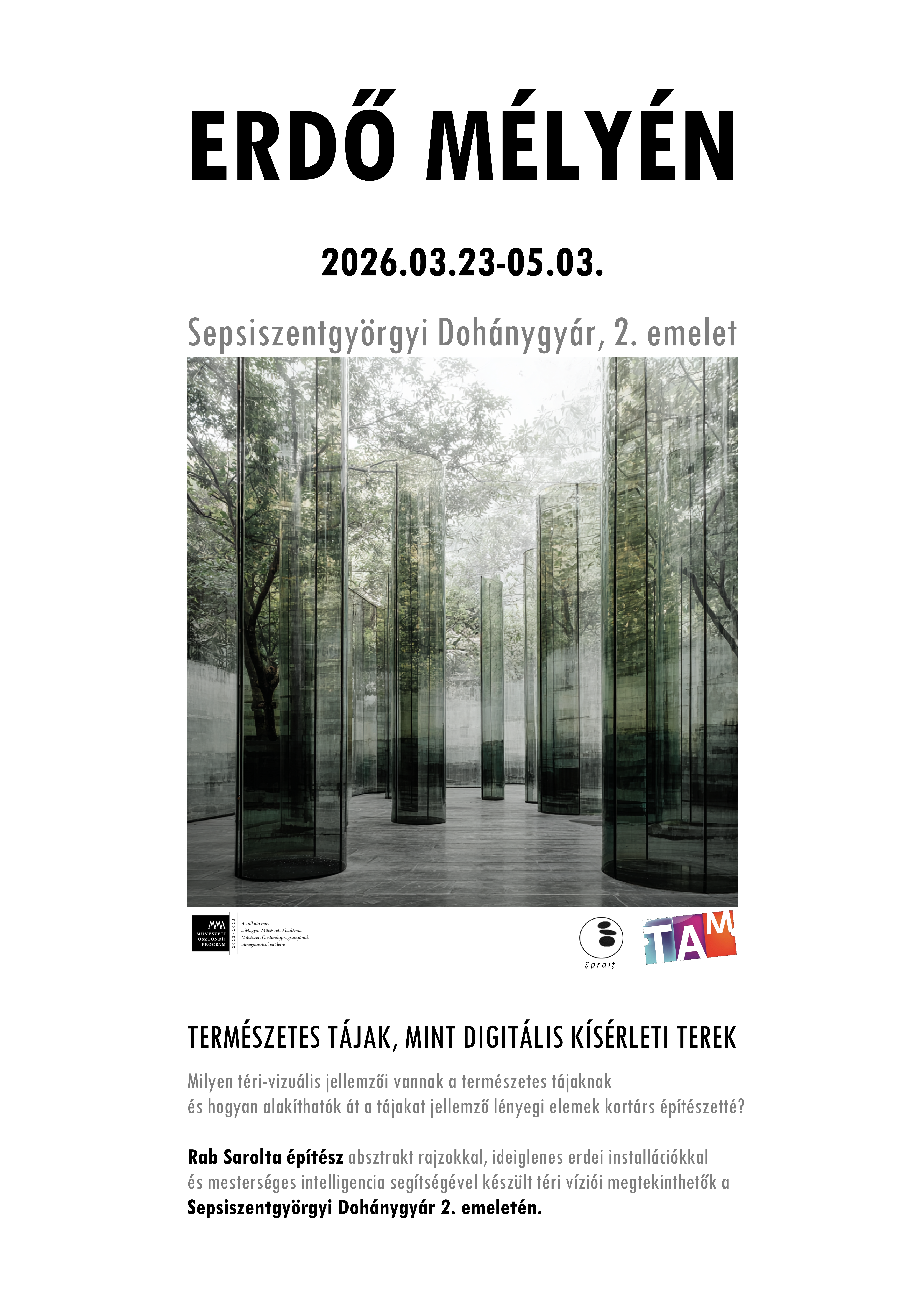 Hogyan alakíthatók át a természetes tájakra jellemző lényegi elemek kortárs építészetté? Absztrakt rajzokkal, ideiglenes erdei installációkkal és MI segítségével készült téri kísérleteim Szent György Napok alkalmával újra megtekinthetők a Sepsiszentgyörgyi Dohánygyár második emeletén.