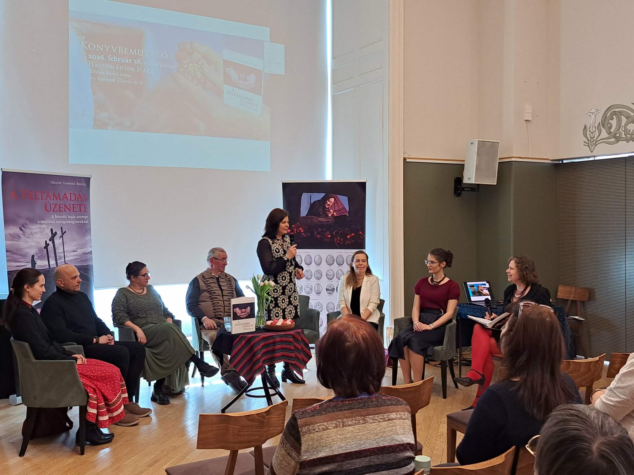 A Tojásdíszítők Egyesületének szervezésében, a Hagyományok Háza adott otthonnt a könyvbemutatónak. Péter Szidónia moderátori felkészültsége révén hamar kialakult az a bensőséges hangulat, amely a vendégek számára is átélhetővé tette a moldvai húsvéti ünnepkört, egy kötet születésének személyes történeteit, s a néprajzi terepmunka tapasztalatait.