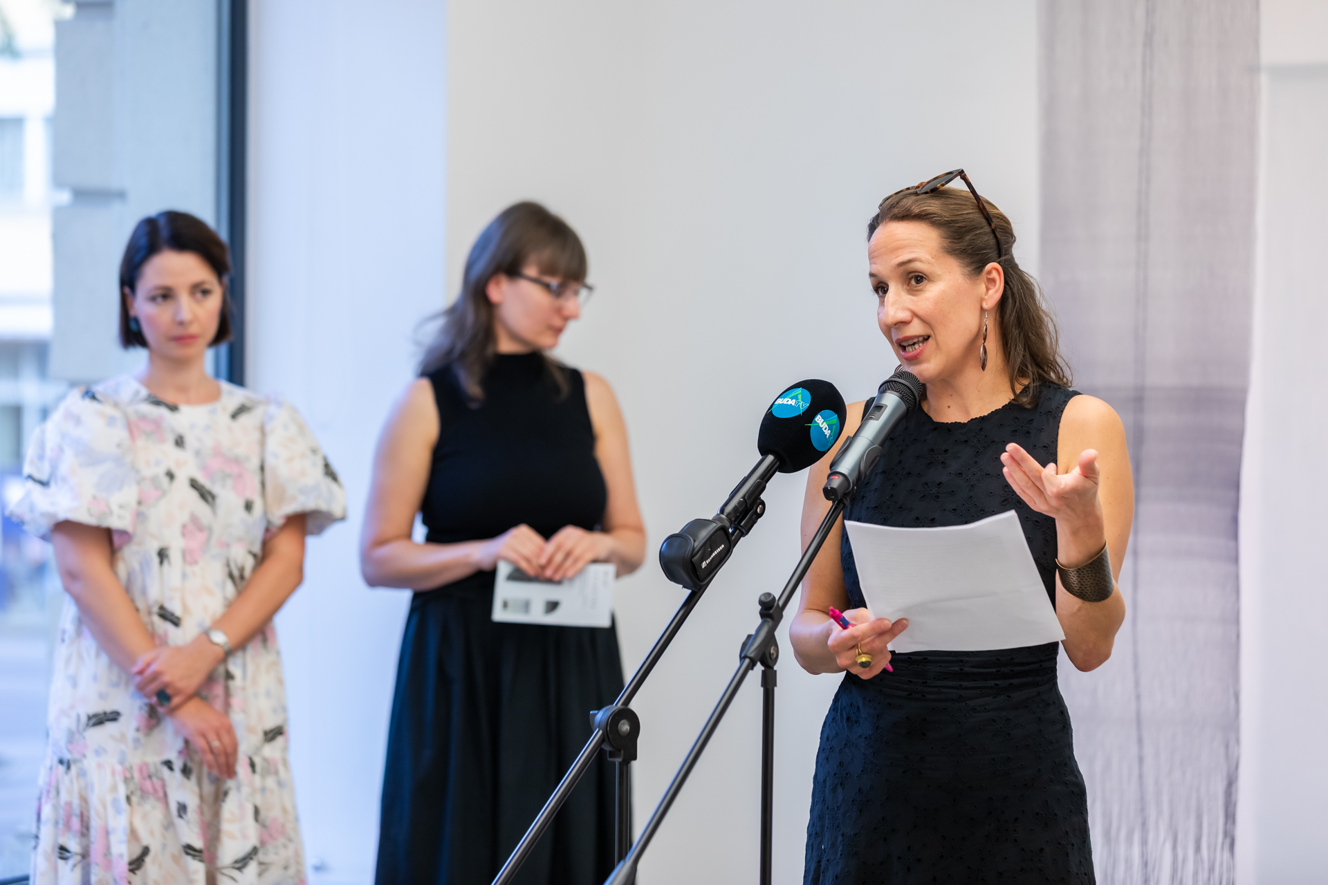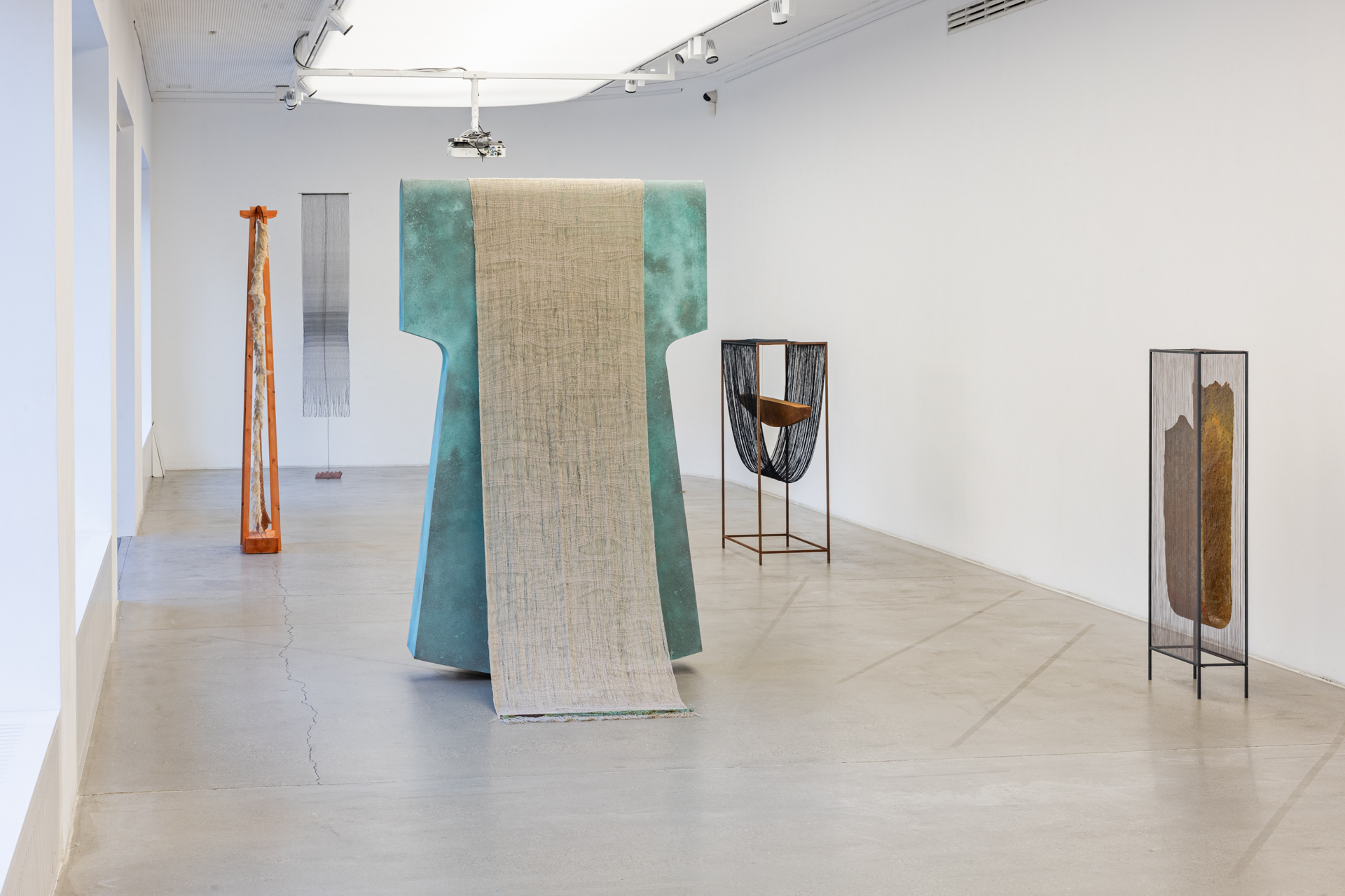 Gergely Réka 2022 és 2025 között a Magyar Művészeti Akadémia ösztöndíjasa volt, amely lehetőséget adott számára egy koherens szakmai program megvalósítására; kísérletek, ötletek, tervek felvetésére és kibontására. Jelen kiállítás címe – Felvetés – frappáns és a magyar nyelv különleges rétegzettségében, többértelműségében és finom árnyalataiban rejlő lehetőségeket kiaknázva utal Gergely Réka az elmúlt pár év szobrászi érdeklődésének két fontos aspektusára: a felvetés, mint láncfonal értelemben, amely a textilkészítéskor az anyag alapstruktúráját adja meg; a felvetőszál minden szövet kiindulópontja és láthatatlan tartószerkezete. Ugyanis Réka az elmúlt időben izgalmas és komoly kísérleteket folytatott a textil és különböző szövetek elkészítésével, majd azok szobrászi alkalmazásával. A felvetés másik értelme, egyúttal talán az evidensebb jelentése is, az elmélet, elképzelés, terv, koncepció, képzelet halmazában foglalható össze. Valójában a magyar nyelv szemantikai bravúrja, hogy a felvetés kifejezés minden értelmezésében magában hordozza a befejezetlenség pozitív konnotációját, a továbbgondolás lehetőségét: ha felvetünk egy gondolatot, az nem jár egyúttal azon gondolat definíciószerű meghatározásával, hanem fejleszthető, kitágítható, folytatható és módosítható marad, ahogy önmagában a felvetőszál sem teszi a lenfonalat textillé, csupán a vázát, a struktúráját biztosítja. Szabó Noémi, művészettörténész