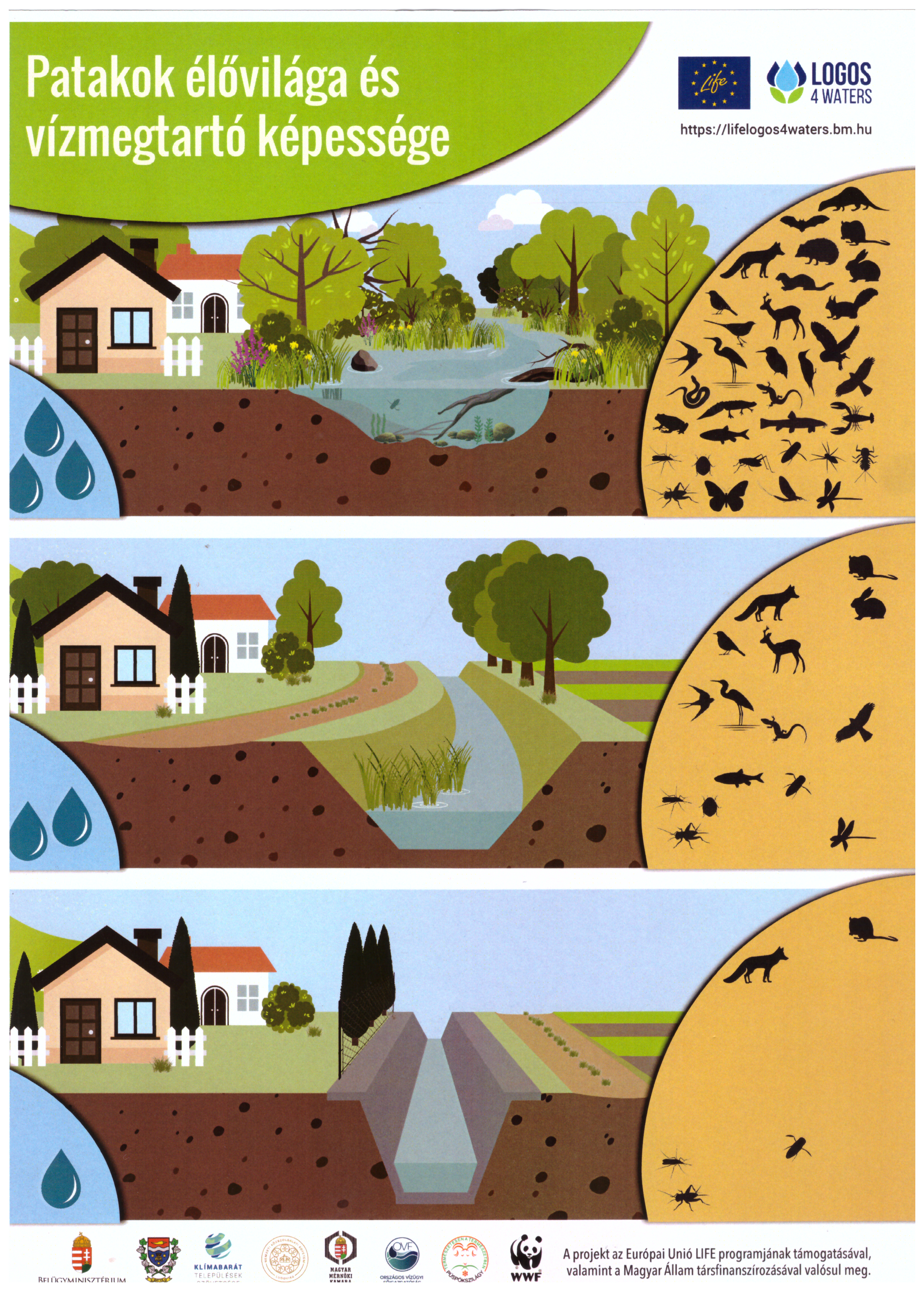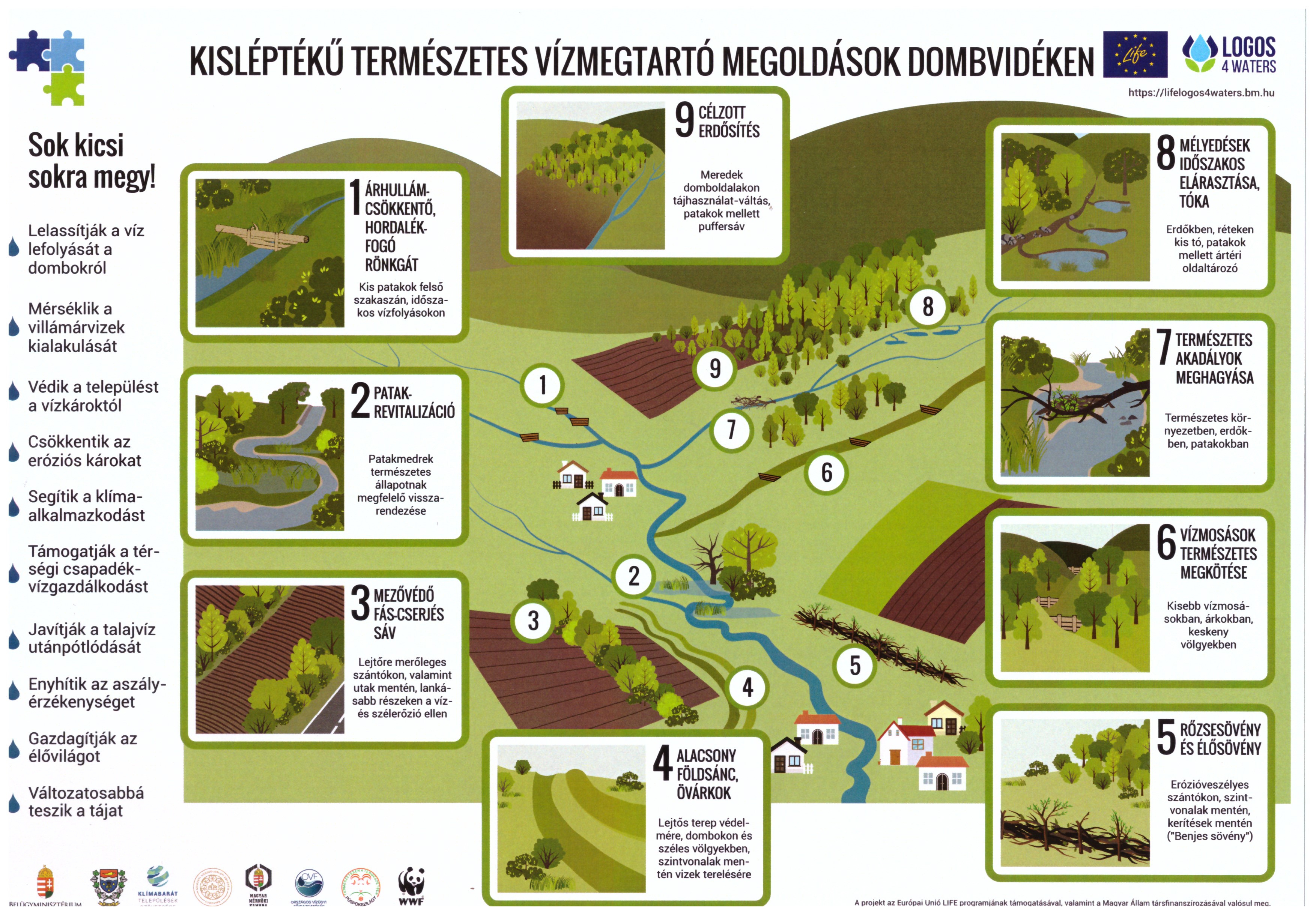 Meghívást kaptunk a dombvidéki természetes vízmegtartó és lefolyáslassító megoldások szakmai tereplátogatásra a LIFE LOGOS 4 WATERS projekt dombvidéki mintaterületére a Szilágyi- és Gombás-patakok vízgyűjtőjén Püspökszilágy, Penc és Váckisúlyfalu területére. Az esemény keretében a helysíznen tekinthettük meg a közigazgatási terület külterületi részén megvalósult jógyakorlatokat (rönkgátak, benjes sövény, monitoring rendszer), melyhez szorosan kapcsolódnak a belterületi vízmegtartó megoldások (pl. esővízgyűjtó ereszcsapoló, esőkertek, vízáteresztő burkolatok, madár és denevérodúk). Ezeket a megoldásokat alkalmazhatják a helyi lakosok vagy intézmények közösségei helyi szinten is. Ezekből számos bekerült az iskolai konvepciótervbe is, pl. az ősszel a tankertnél kihelyezett esővízgyűjtők, vagy a DINPI-vel szorosan együttműködő iskolai természet szakkör által kihelyezett madárodúk.