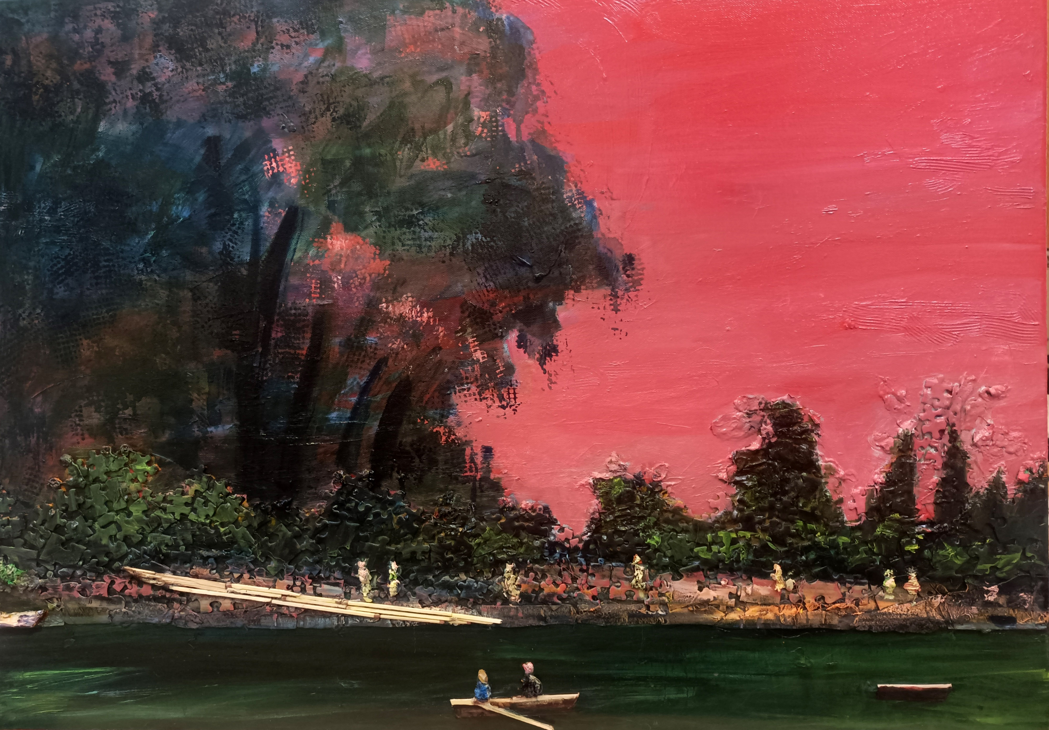 Napnyugta a Rómain, 65 x 90 cm, olaj, kollázs, vászon, 2025. képemmel szerepelek a biennálén.