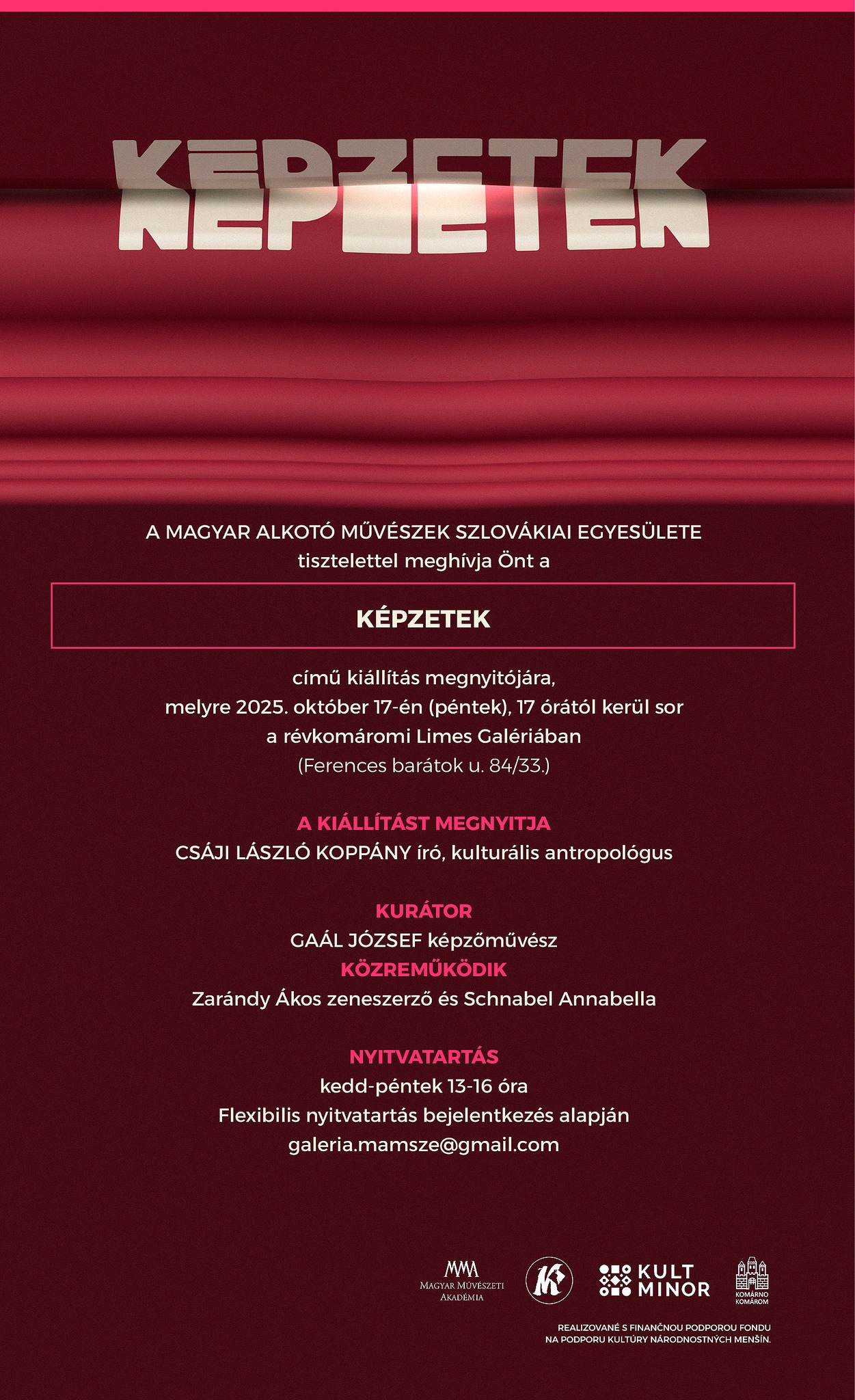 A komáromi Limes Galériában október 17-én nyílt meg a Képzetek című kiállítás, amely a Magyar Művészeti Akadémia 2022–2025 ösztöndíjasainak válogatott munkáit mutatja be. A tárlat főszervezője a Magyar Alkotó Művészek Szlovákiai Egyesülete. A kiállítás november 7-ig, péntekig látogatható.