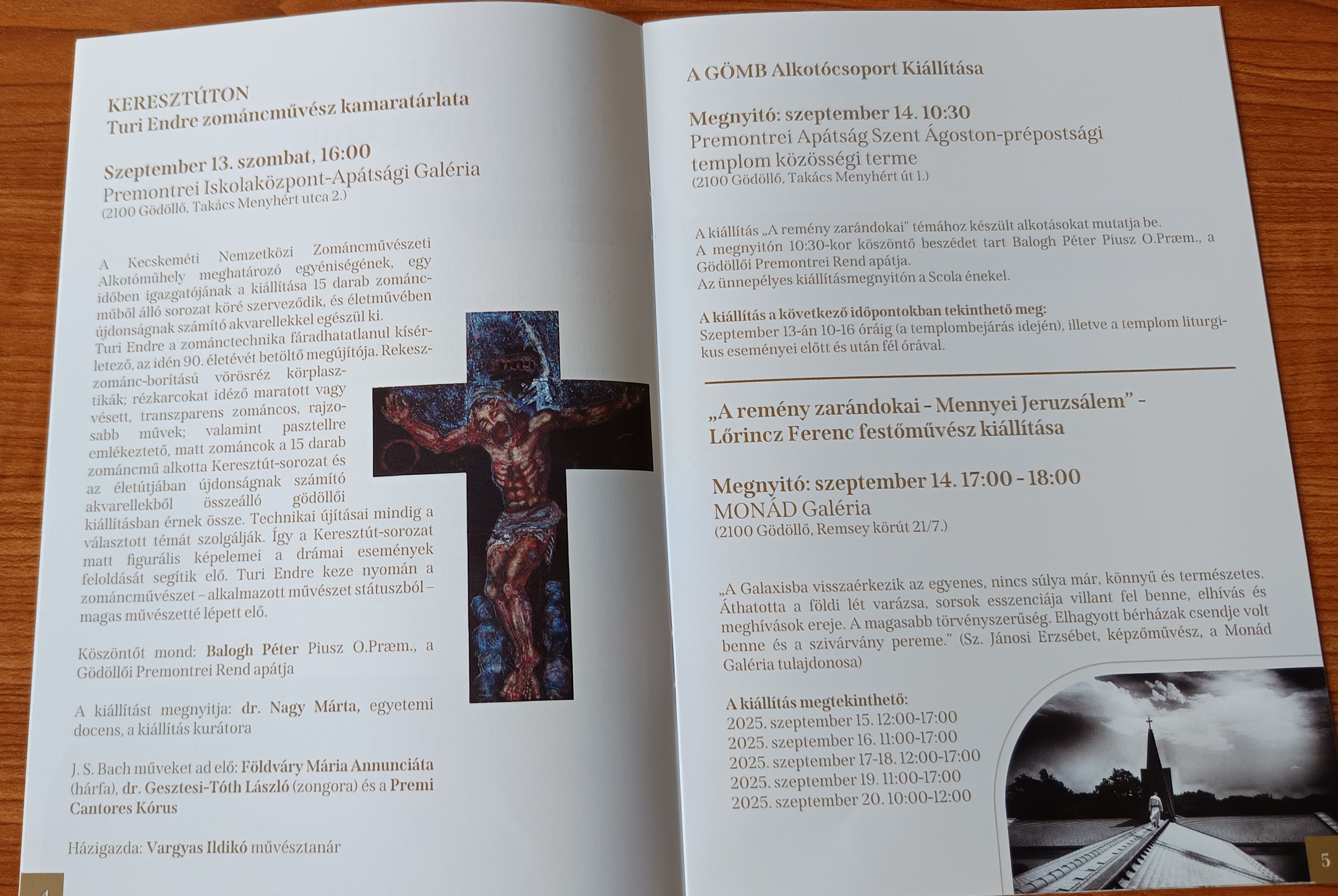 Turi Endre képzőművész zománc- és akvarell kiállítására a gödöllői Premontrei Iskolaközpontban.A kiállítás az Ars Sacra Fesztivál keretei között valósult meg.
