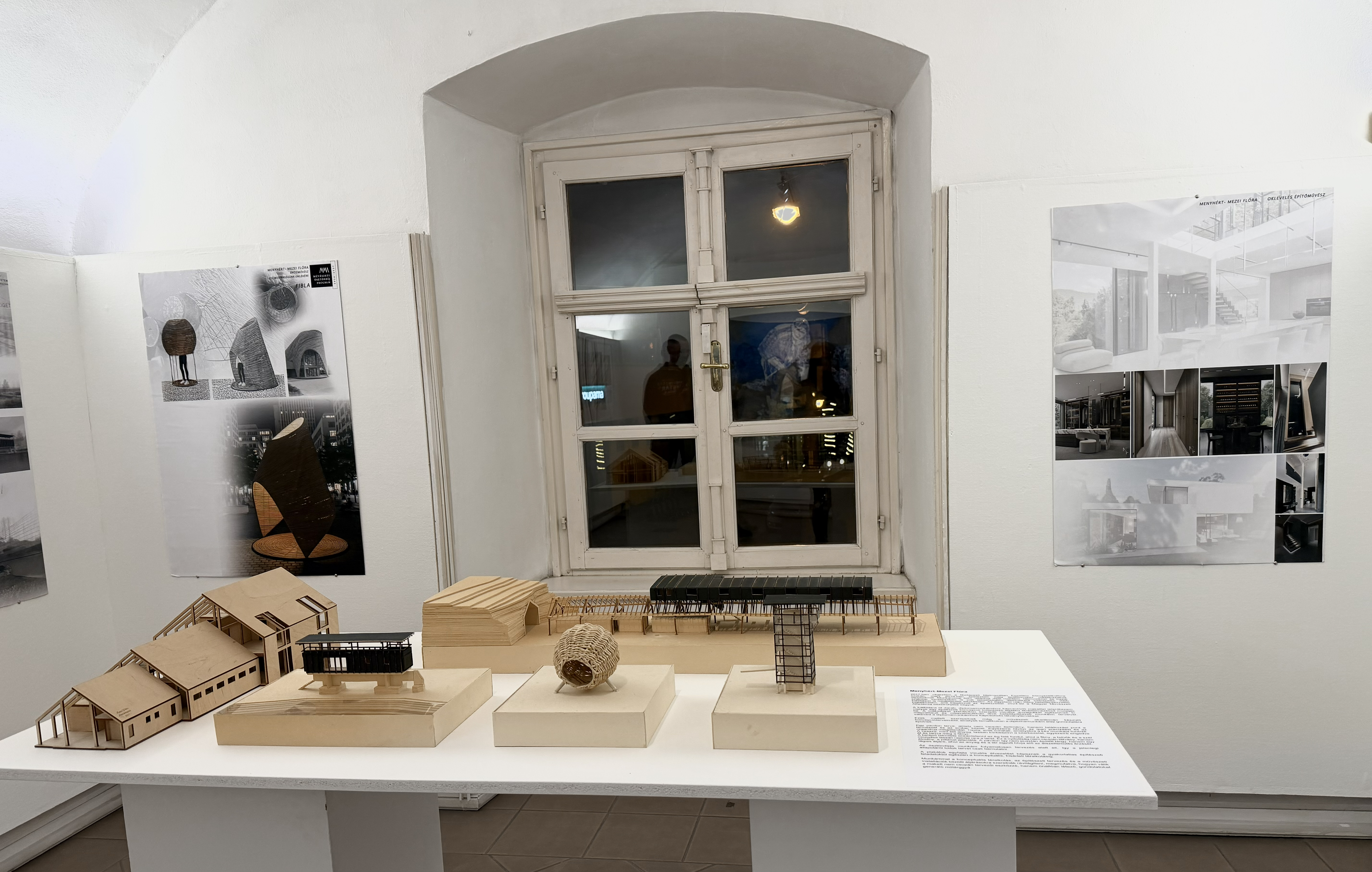 FIBLA nevű vessző kísérlete, installációs terve. A tárlaton emellett belsőépítészeti és építészeti tervei, valamint megvalósult munkáiból is megtekinthető néhány.