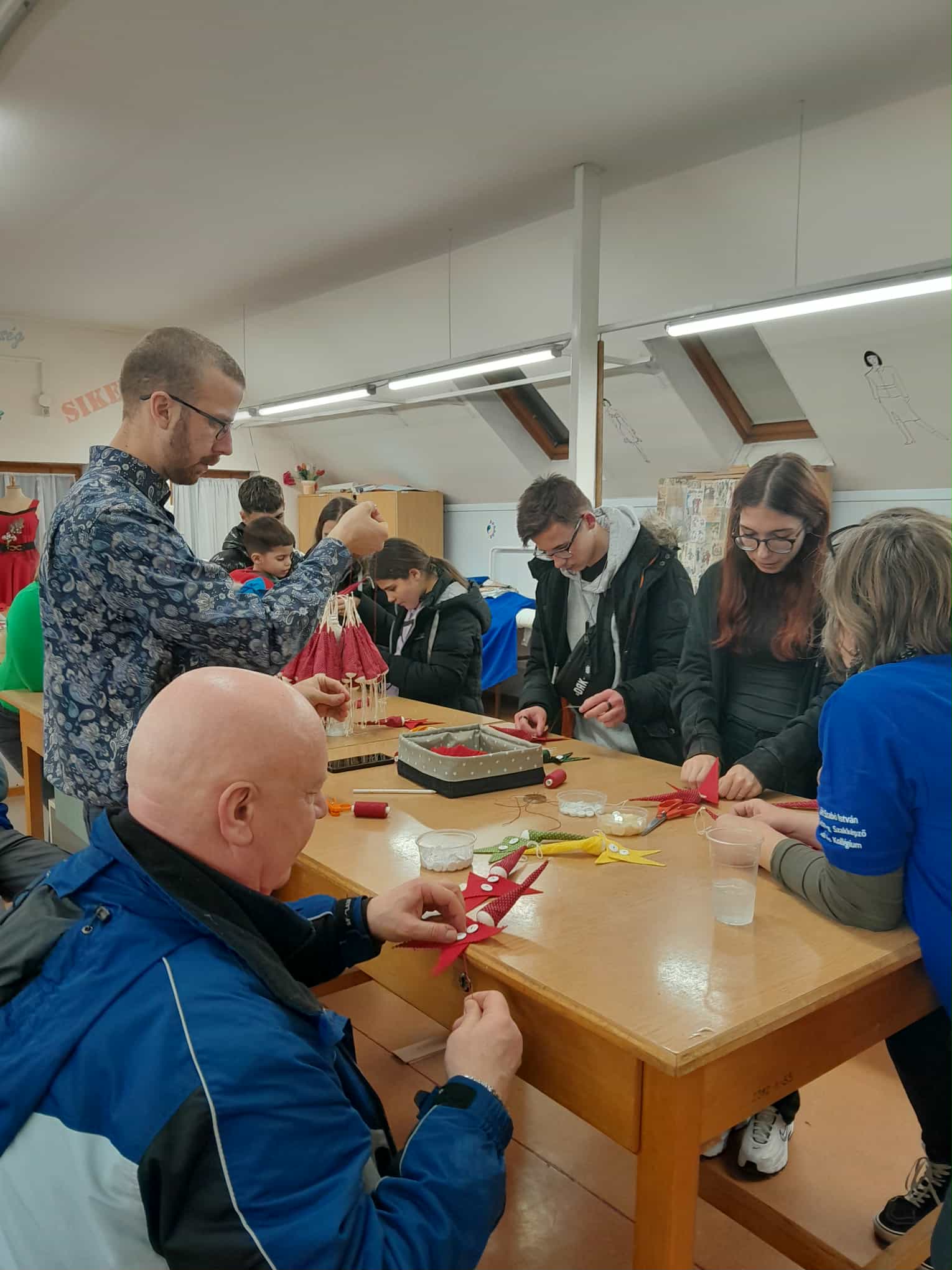 Az évente megrendezésre kerülő kisinasok éjszakájának célja, hogy az óvodás és általános iskolás gyermekek megismerkedhessenek a különböző szakmákkal és műhelyekkel. Az eseményen a kreatív ágazati vezető meghívására vettem részt, ahol az érdeklődőkkel manót készítetünk. A nap végén az iskola pedagógusai is tűt és cérnát ragadtak.
