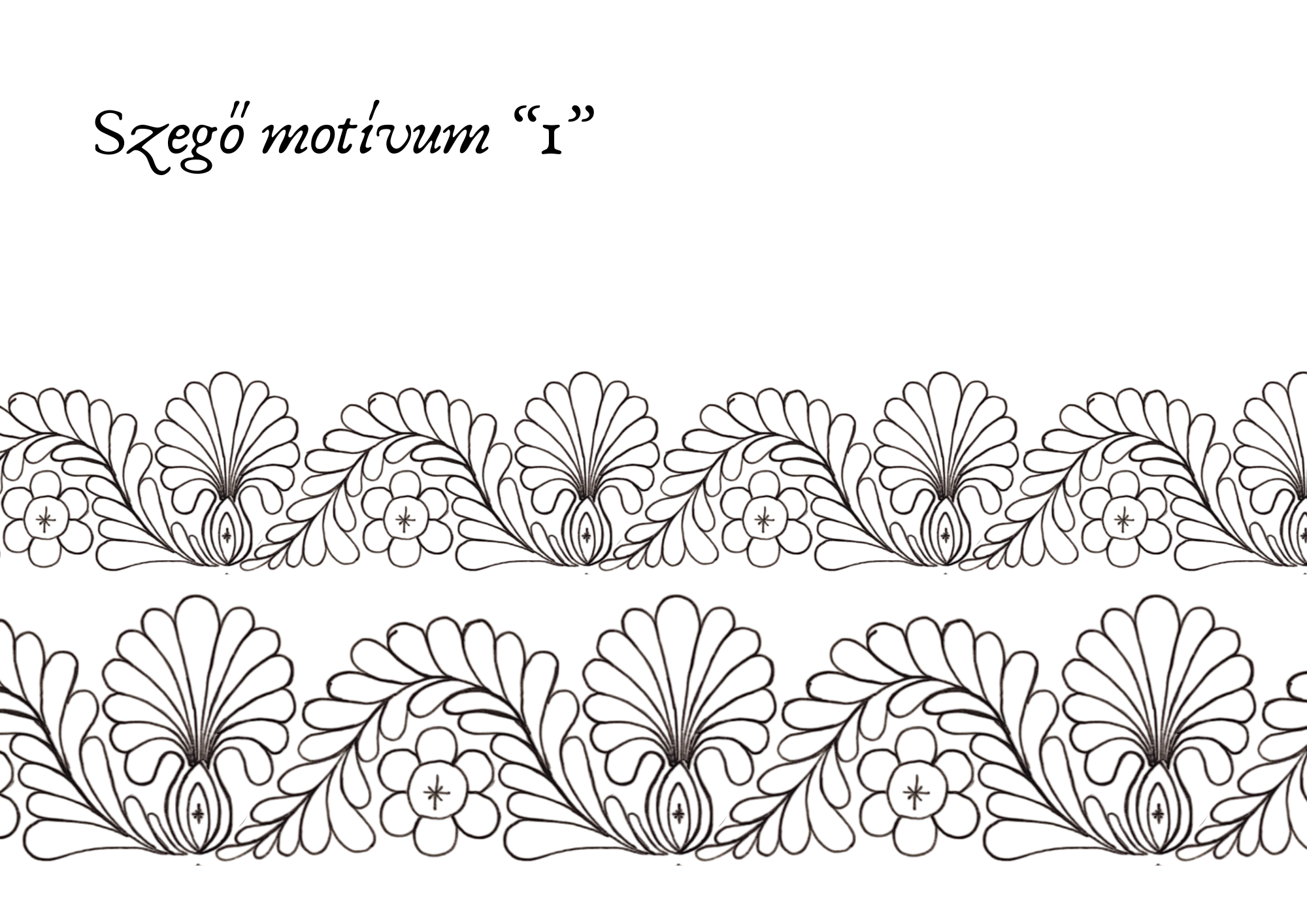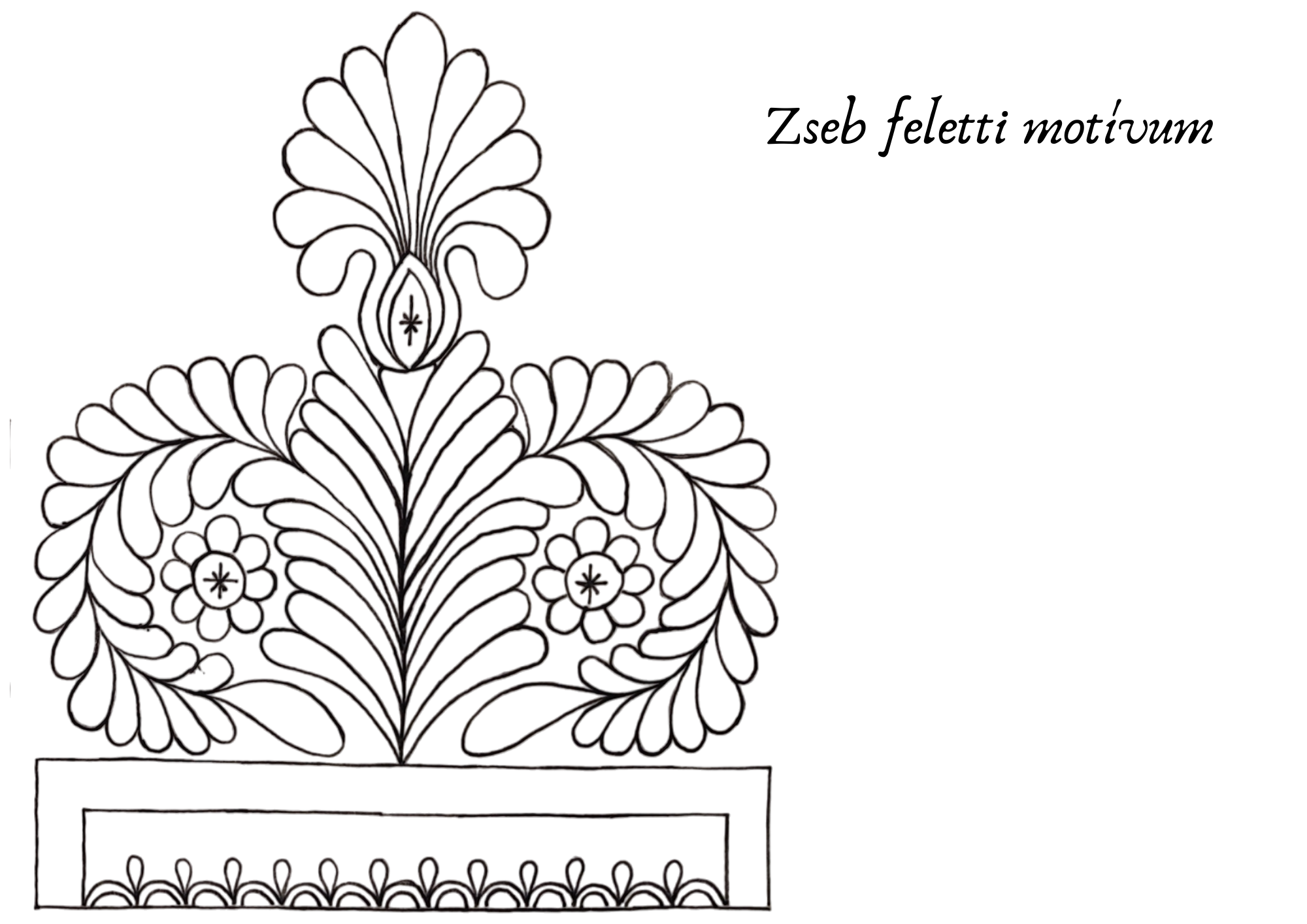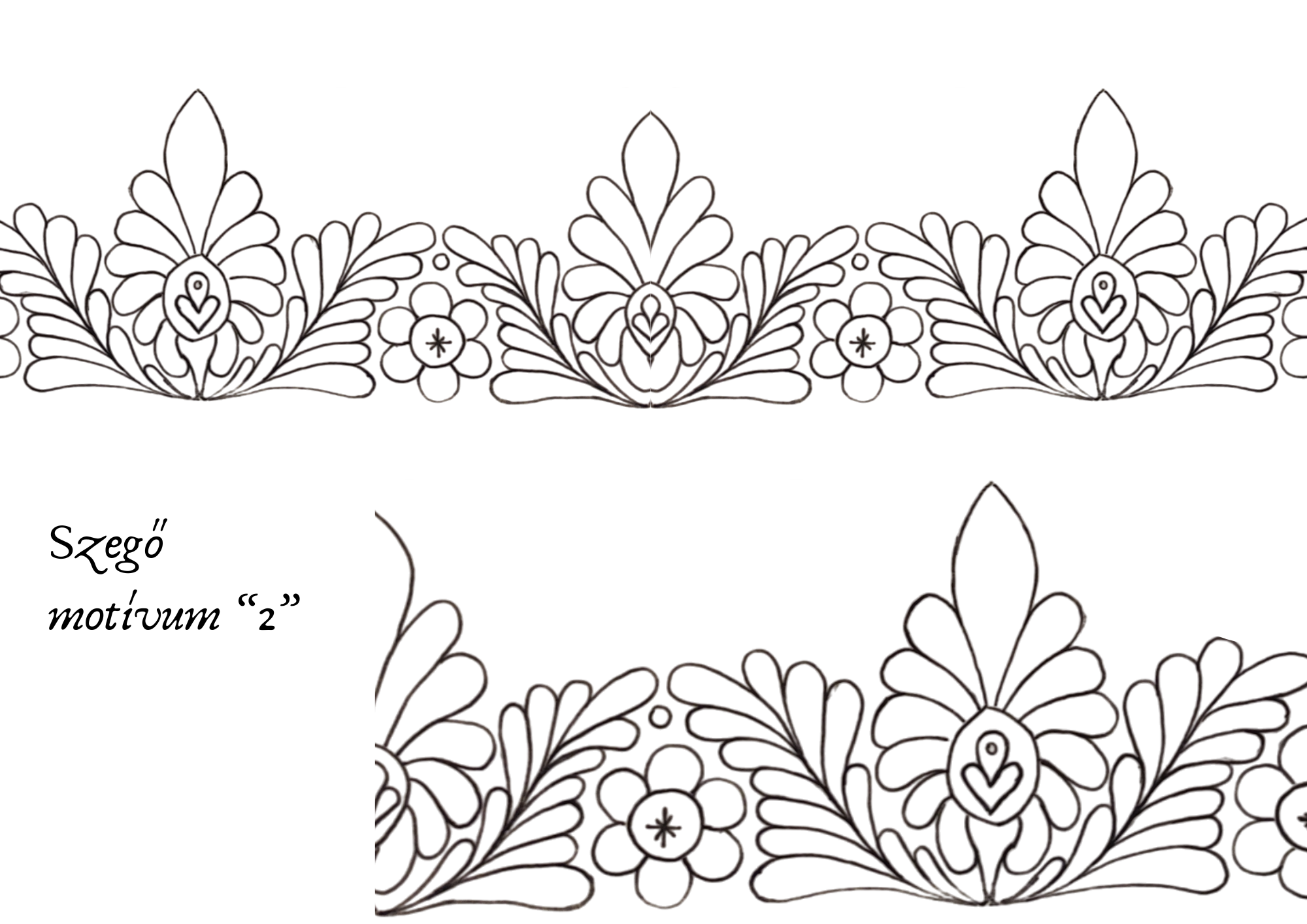 A motívum apró virágmintákból, szegfű motívumból madármintából áll majd. A különböző motívumok szorosan töltik ki a rendelkezésükre álló felületeket, a harmonikus egységet a különböző motívumokat szorosan körülölelő levél ornamentika teszi teljessé.