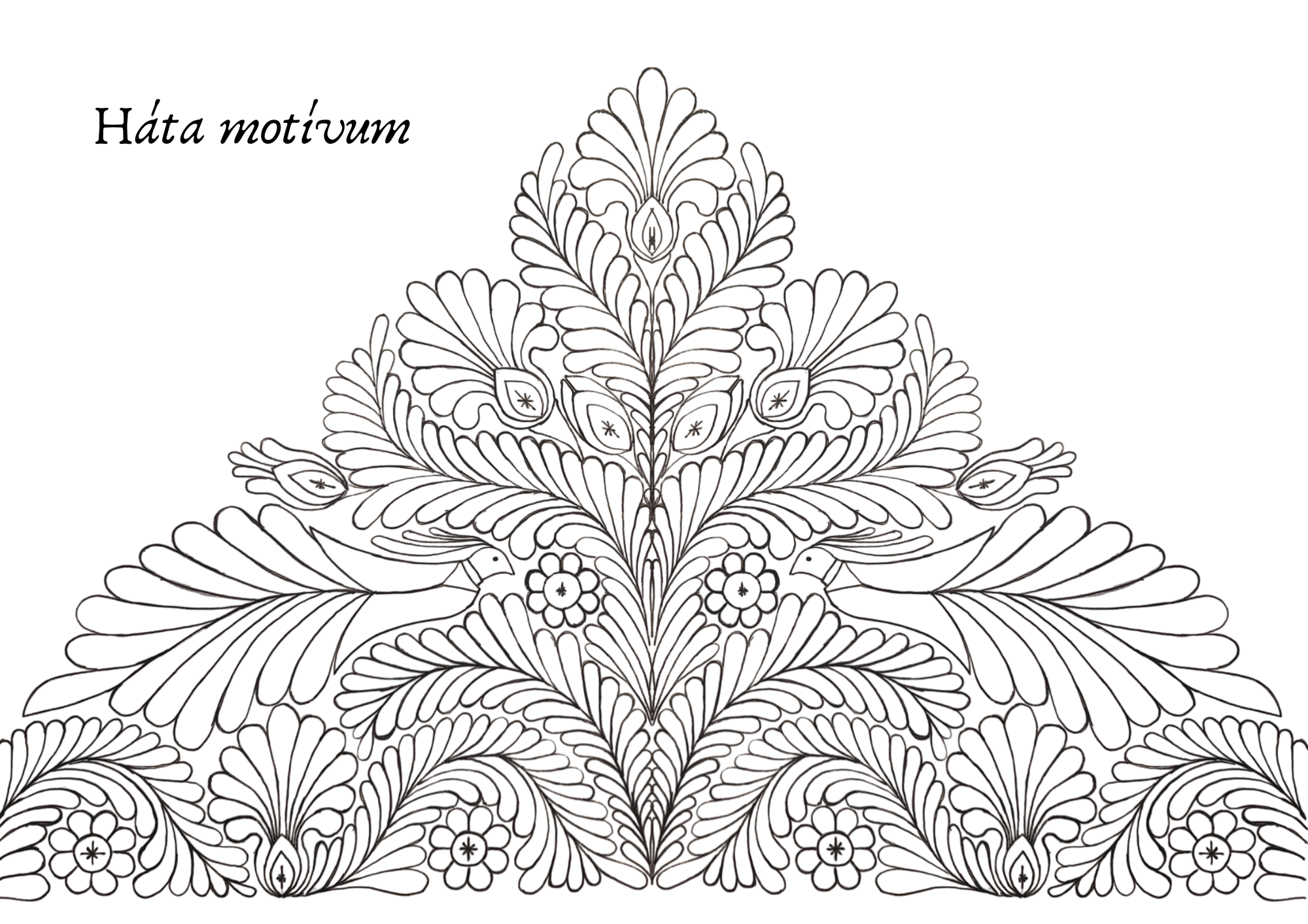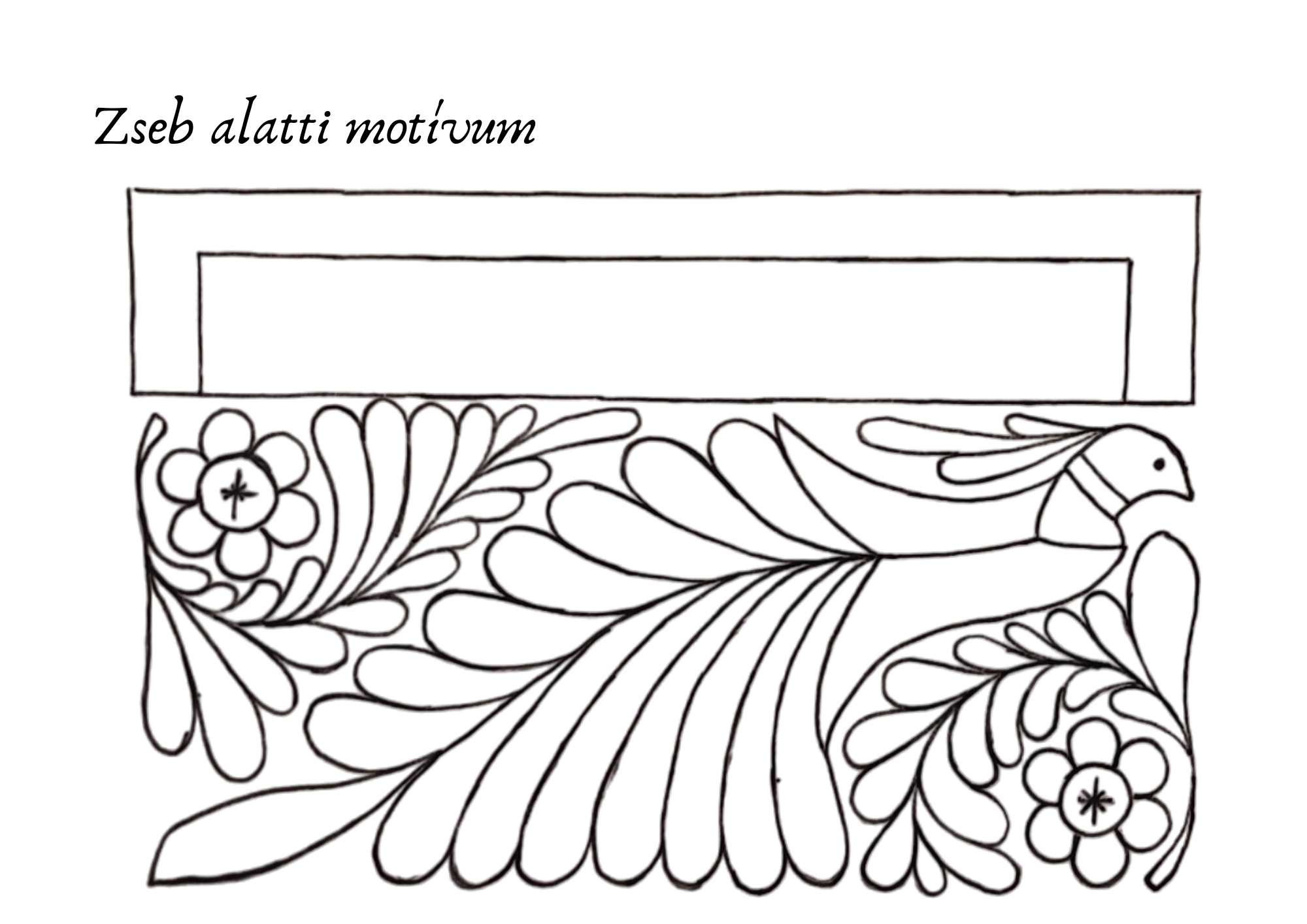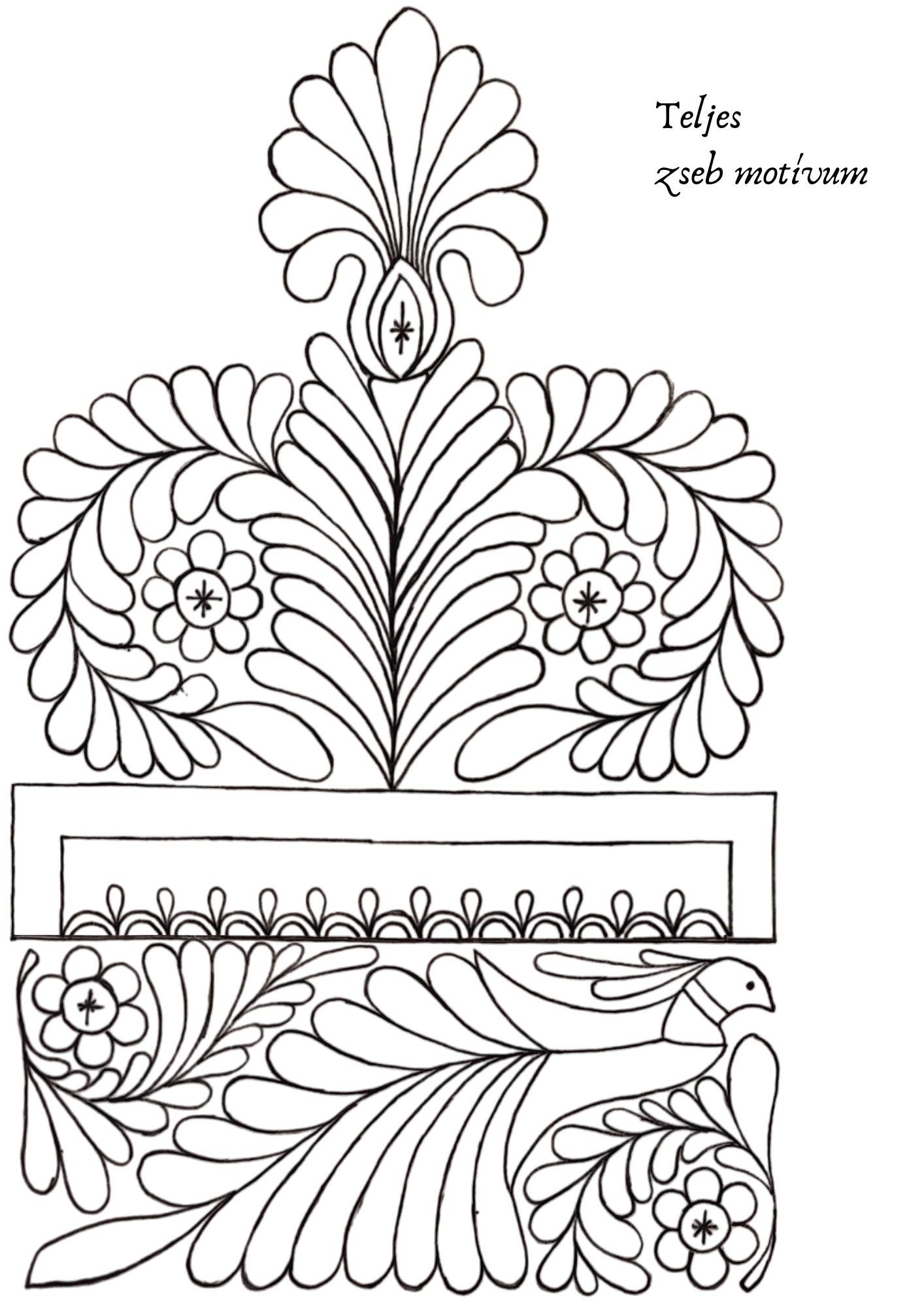 A motívum apró virágmintákból, szegfű motívumból madármintából áll majd. A különböző motívumok szorosan töltik ki a rendelkezésükre álló felületeket, a harmonikus egységet a különböző motívumokat szorosan körülölelő levél ornamentika teszi teljessé.