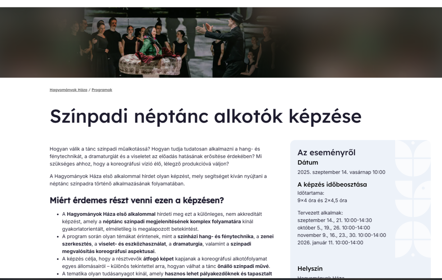 Színpadi néptánc alkotók képzése