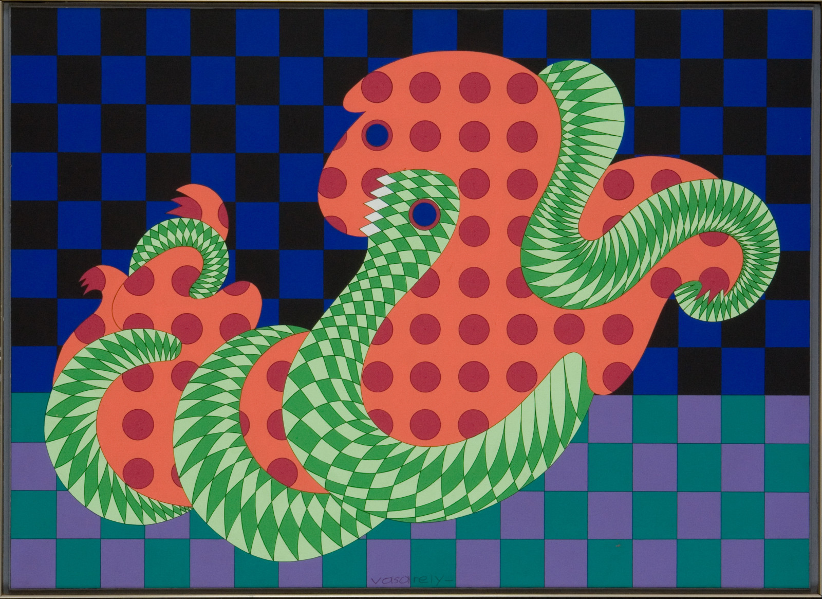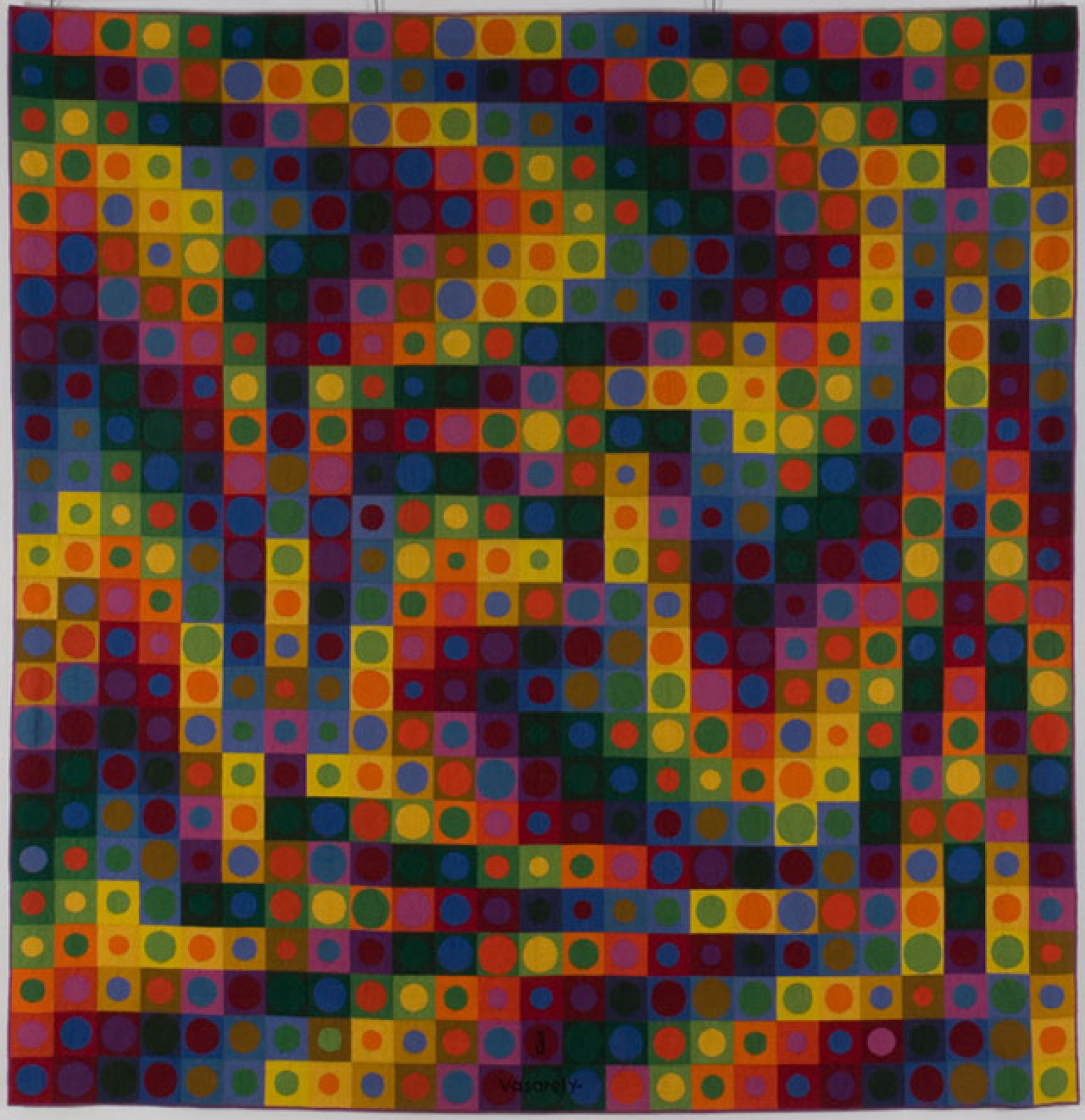Victor Vasarely (Vásárhelyi Győző) a 20. századi képzőművészet egyik meghatározó alakja, az op art mozgalom kezdeményezője és legnevesebb képviselője. Pécsett született 1906-ban, fiatalon Franciaországba emigrált, életművének nagy részét ott alkotta. A pécsi kiállítás átfogó képet nyújt Vasarely alkotói pályájának valamennyi korszakáról, a korai reklámgrafikáktól kezdve az absztrakt geometrikus és kinetikus műveken át a színek téri hatására építő, nagy méretű festményekig és textilképekig. A kiállításon a művész felesége, Claire Vasarely és fia, az op art hagyományát továbbvivő Yvaral (Jean-Pierre Vasarely) művei is megtekinthetők.