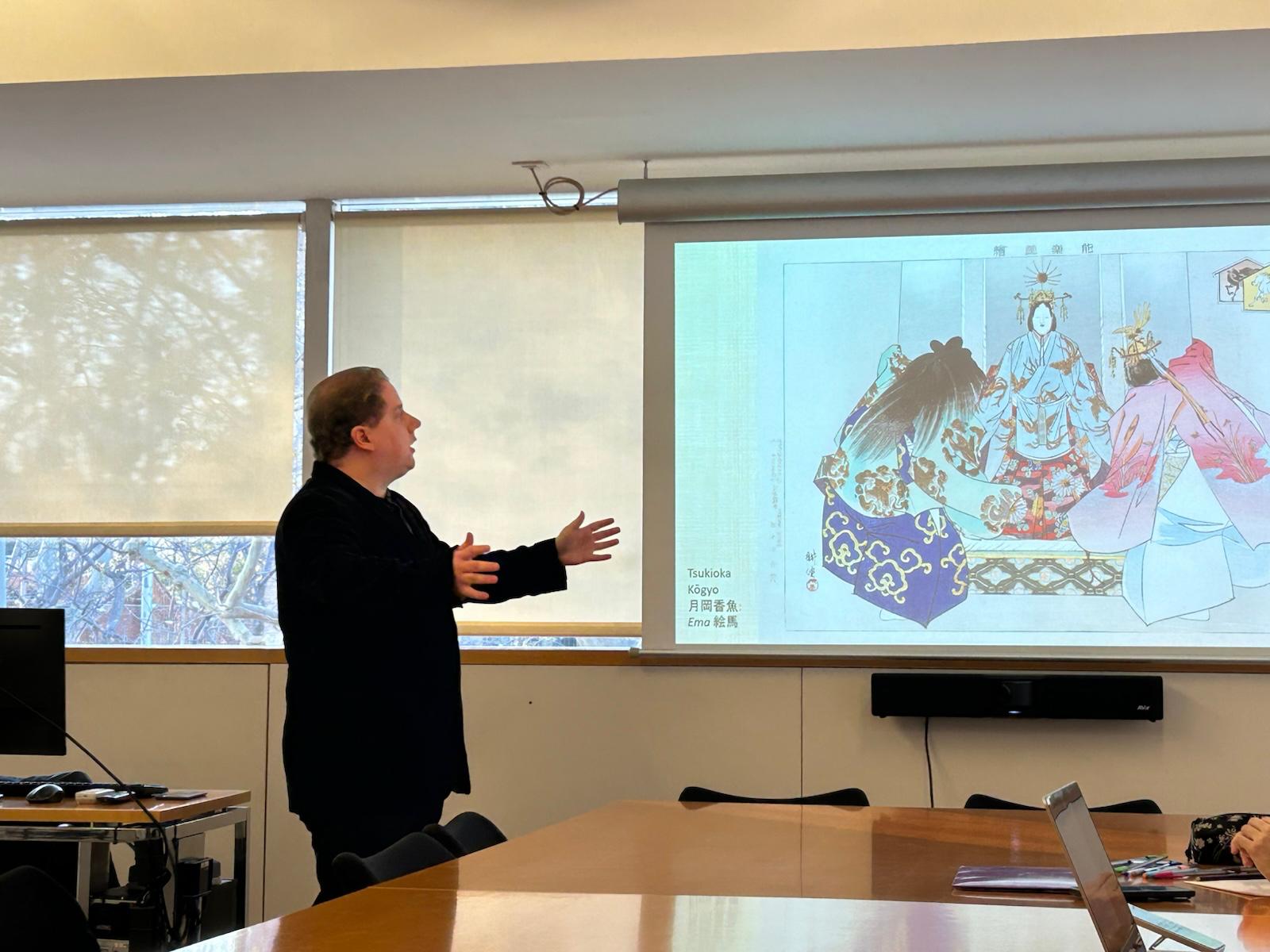 2026 tavaszi kutatóútja során Cseh Dávid ismét a Universitat Pompeu Fabra vendége volt. Újabb vendégelőadást tartott, ezúttal a középkori japán nó-játékról, Zeami Motokijo mester számára kiemelten fontos két fogalmáról (omosiroki és mezurasiki), valamint az Ema című nó-drámáról, amely a japán napistennőhöz, Amateraszu Ómikamihoz kapcsolódik. Az eseményt elsősorban az egyetem doktoranduszai számára hirdették meg, de nyilvános is volt egyben, így más, a japán kultúra, színház és esztétika iránt érdeklődők is részt vettek rajta!