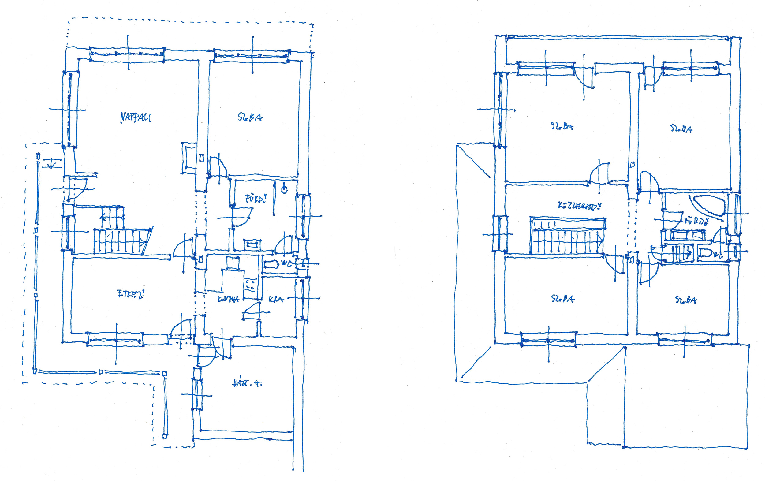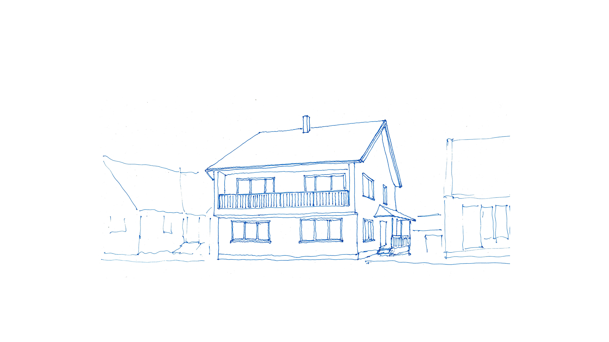 A soron következő ház kiindulási állapotát szeretném bemutatni, amit az ösztöndíj keretében tervezek át. Ez egy 1980 körül épült családi ház, ami az előzőhöz hasonlóan Fertőhomok világörökségi területén található. Akkortájt Magyarországon sokan építettek a szükségleteikhez viszonyítottan túldimenzionált lakóházakat, aminek aztán több lakószobáját nem is használták. Ez az attitűd tetten érhető jelen épületünk esetén is. A célszerűtlenségen túl ennek a viselkedésnek következménye, hogy az épület túfeszíti a hagyományos utcaképet, tömege idegen zárvány a faluképben. Jelen kísérletemben az így felmerülő a problémákra igyekszem válaszokat adni, bár érzésem szerint csak mérsékelni fogom tudni őket, megoldani a -csaknem- teljes bontás nélkül.