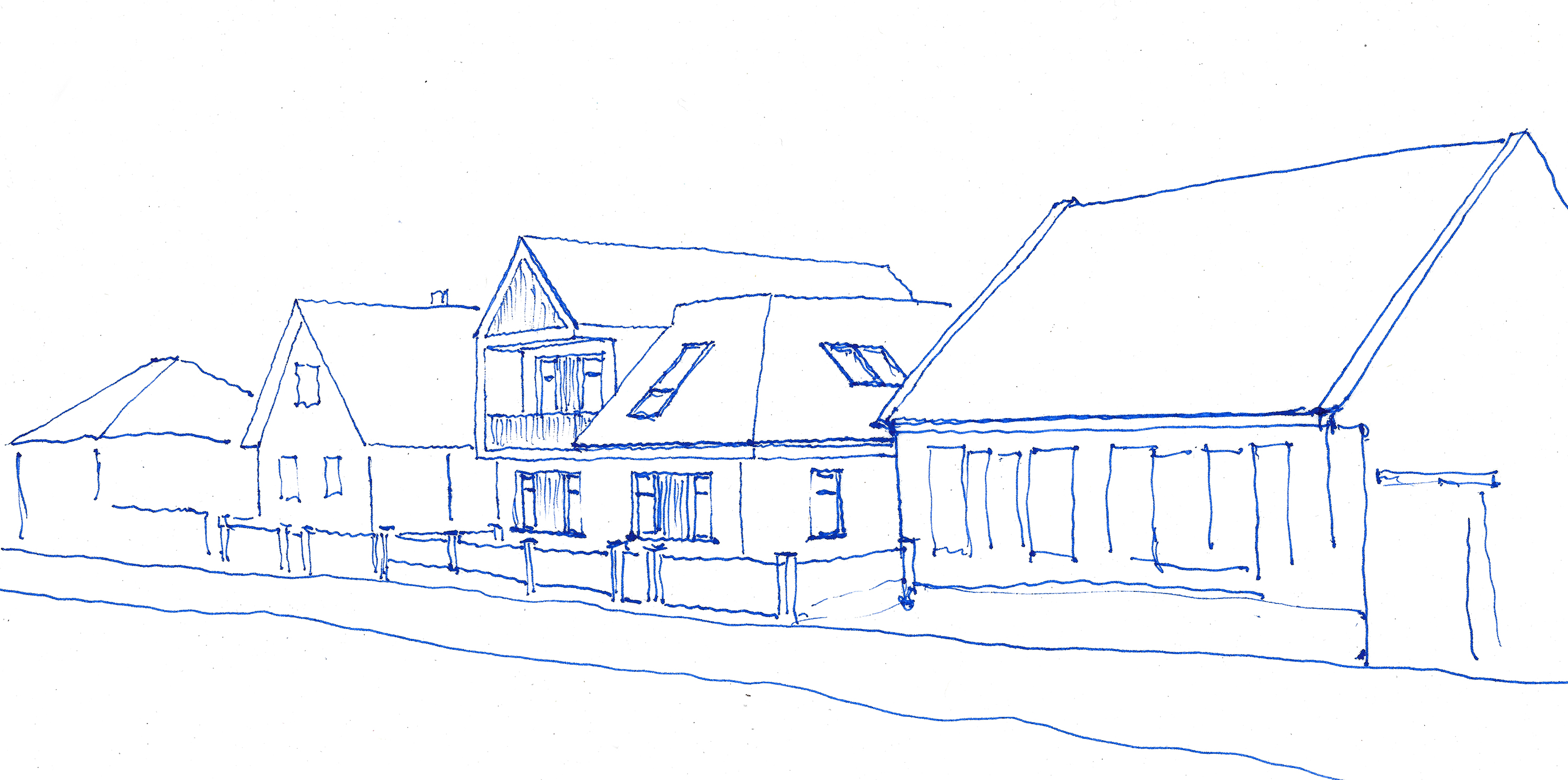 Mindkét kísérletem igekszik az épület tömegét belesimítani az utcaképbe. Az első változat átmenetet képez a két szomszéd ház között, míg a második utcai homlokzatával teljesen felveszi az utcára jellemző homlokzatmagasságot.