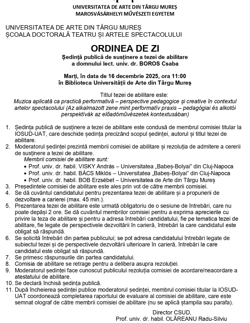 Boros Csaba habilitációs tézisének nyilvános védése a MME - Doktori iskolájában