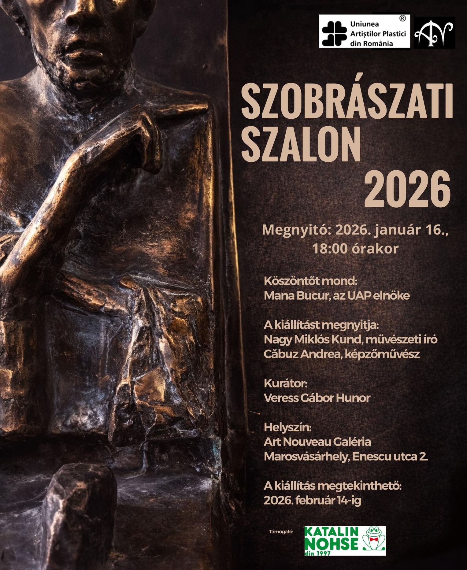 Szobrászati Szalon 2026 című kiállítás Marosvásárhelyen az Art Nouveau Galériában.