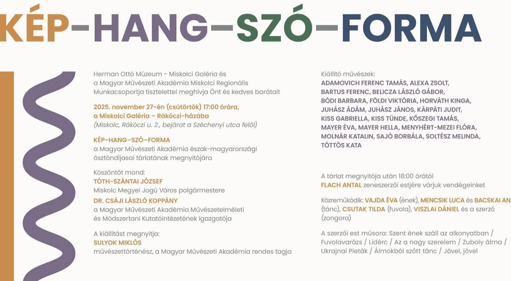 A Magyar Művészeti Akadémia Észak-Magyarországi Ösztöndíjasainak kiállítása a Miskolci Galériában.