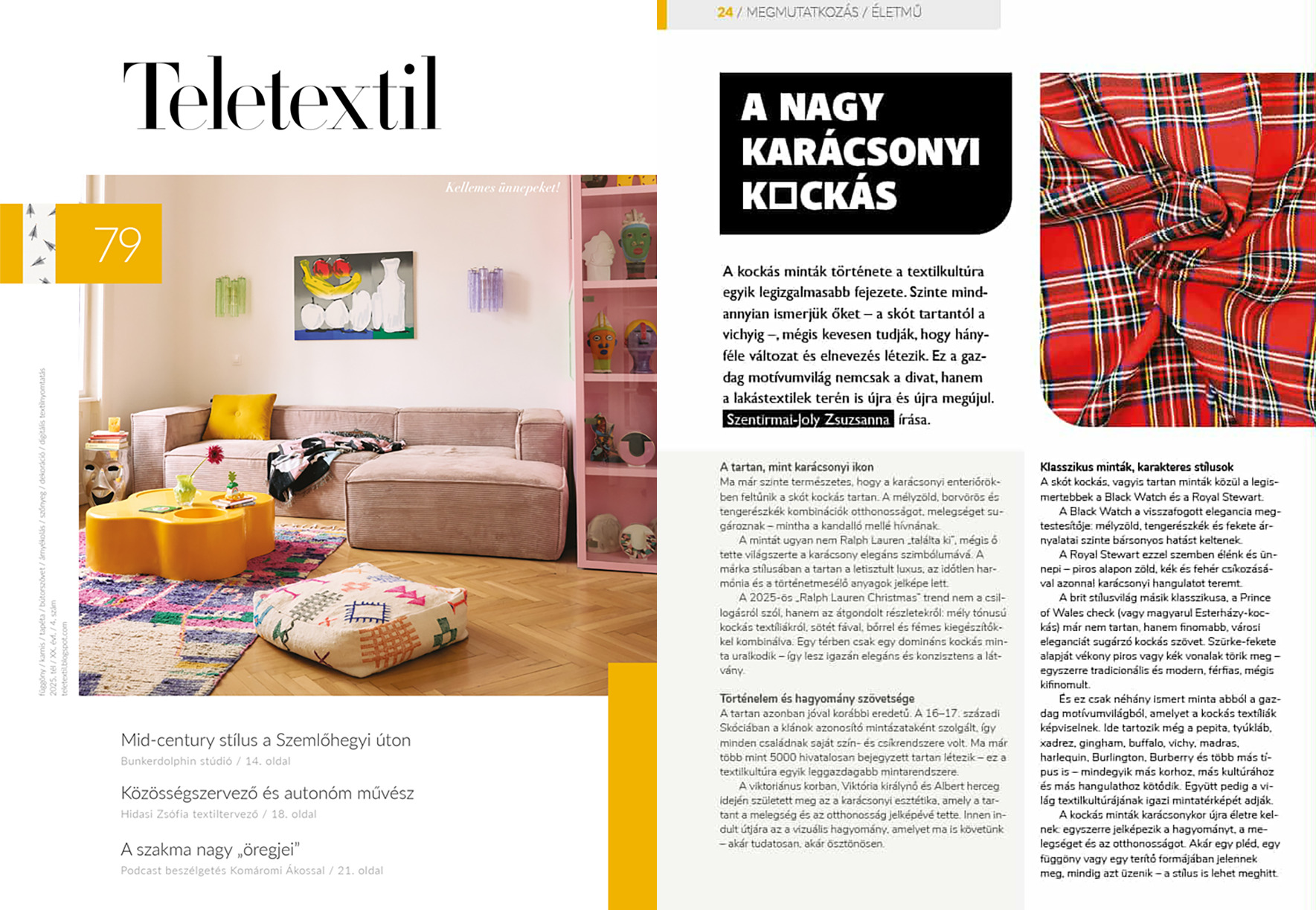 A 79. Teletextil szaklap cikke a kockás minták típusairól, a karácsonyhoz való kötődéséről