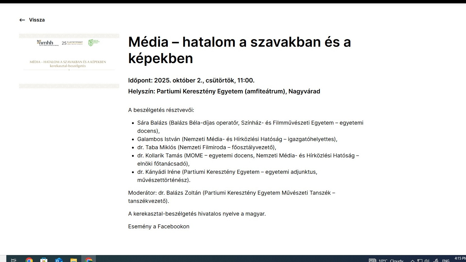 Média - hatalom a szavakban és a képekben, kerekasztal-beszélgetés