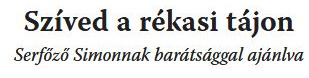 Eme versben Serfőző Simont üdvözlöm, az olykor a rékasi tájban megbúvó-megfigyelő költőt.