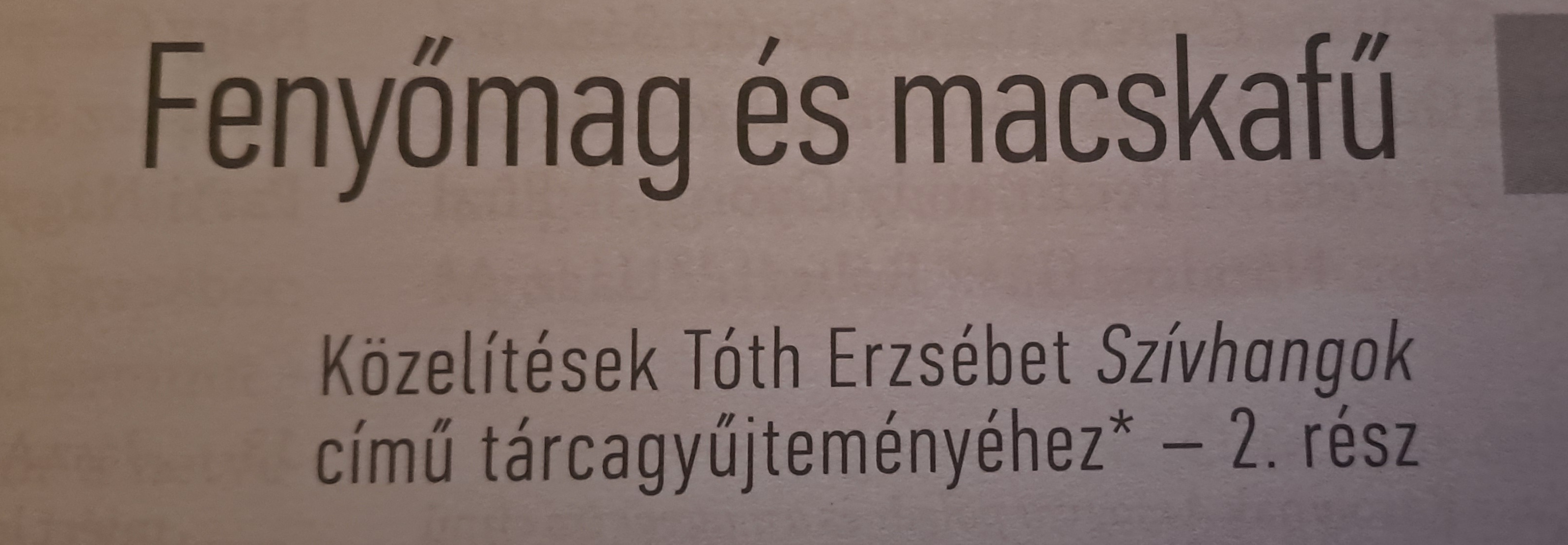 Jelen tanulmány egy hosszabb írásom I. része, amely Tóth Erzsébet Szívhangok c. esszékötetét elemzi.