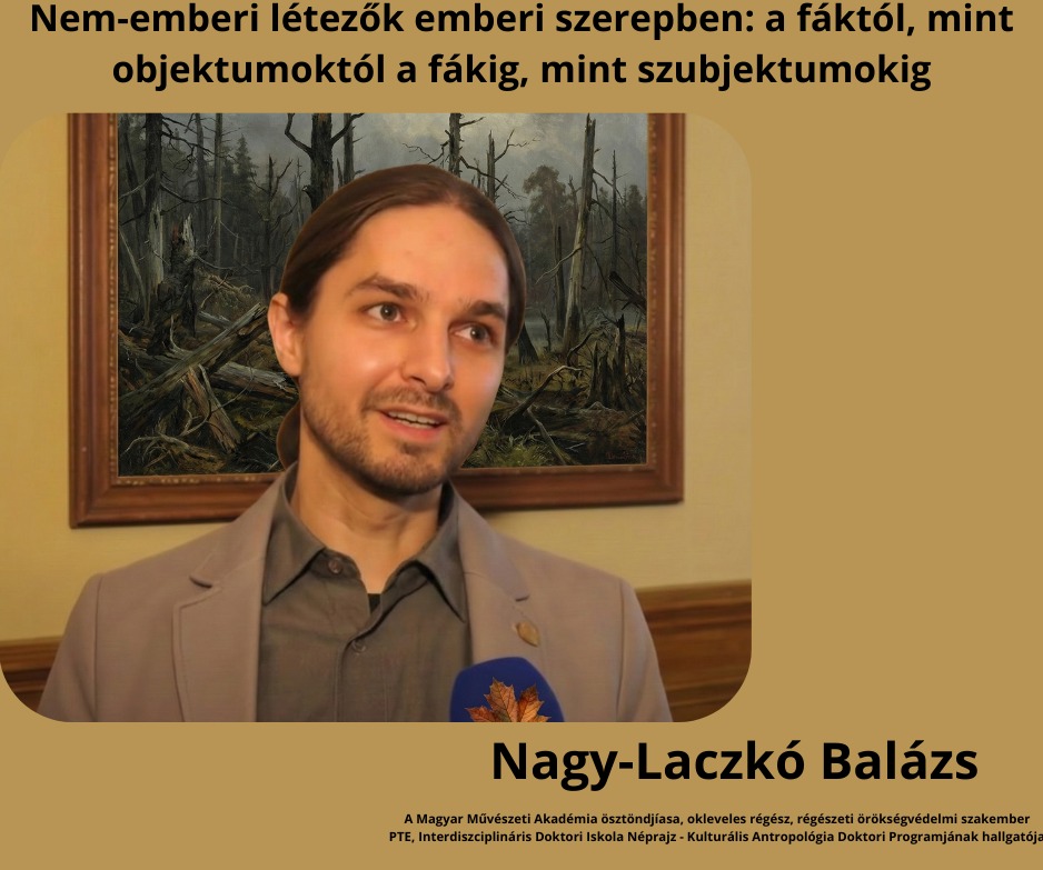 Nagy-Laczkó Balázs író, régész, néprajz-vallástudós, muzeológus, a Pécsi Tudományegyetem Bölcsészettudományi Kar Interdiszciplináris Doktori Iskolájának Néprajz – Kulturális Antropológia Doktori Programjának hallgatója.