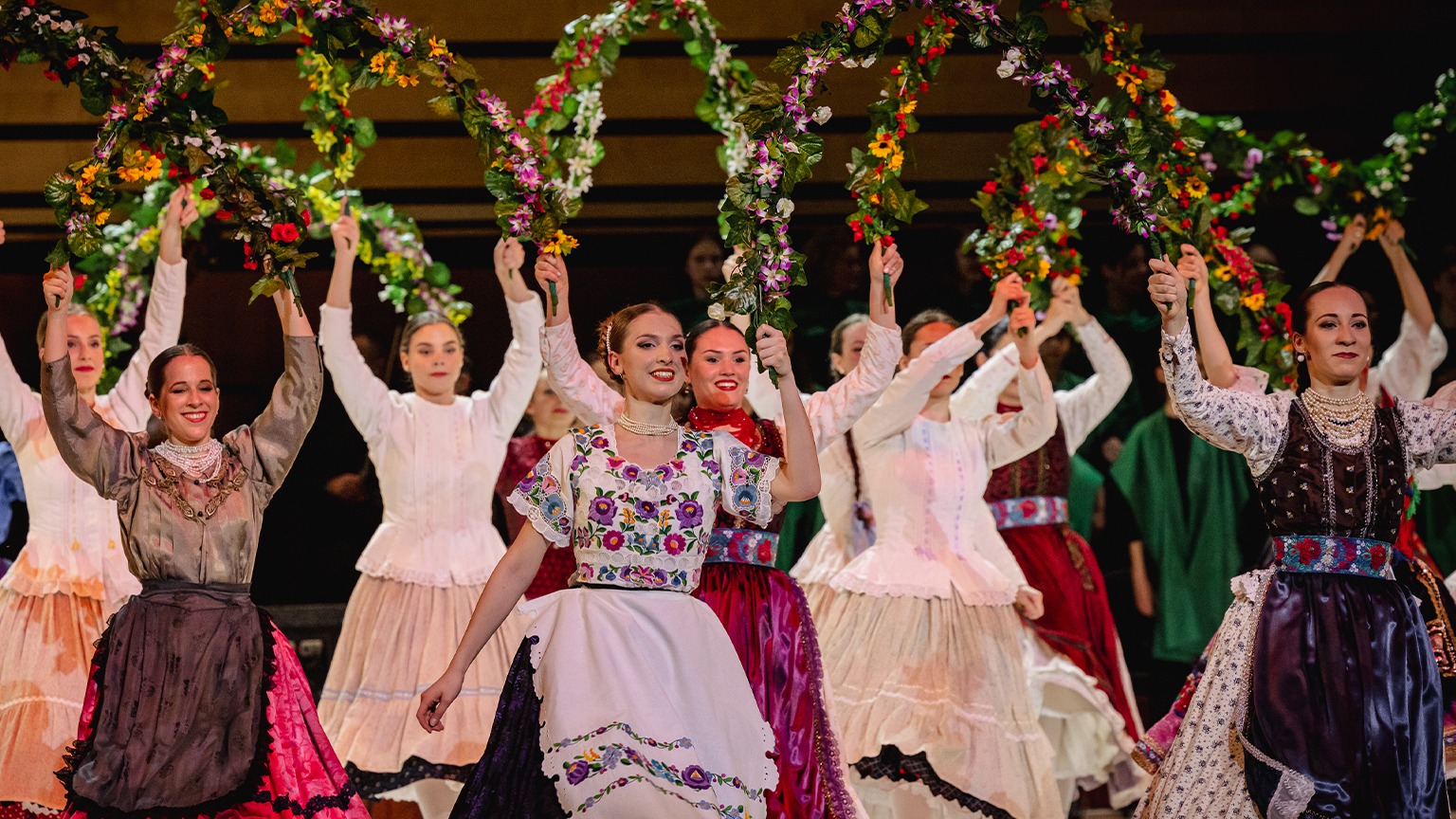 A Magyar Állami Népi Együttes előadása. Szólót énekel Kubinyi Júlia és Hetényi Milán