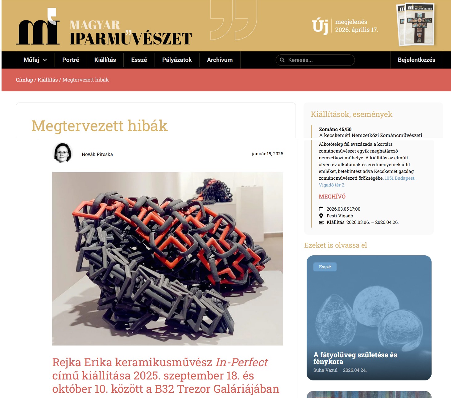Novák Piroska cikke rólam a Magyar Iparművészetben
