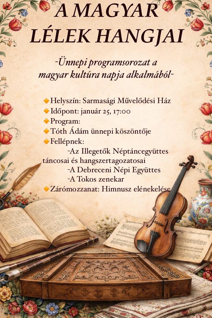 Magyar Kultúra Napja Sarmaságon. Meghívott vendég: a Debreceni népi Együttes és a Tokos Zenekar.