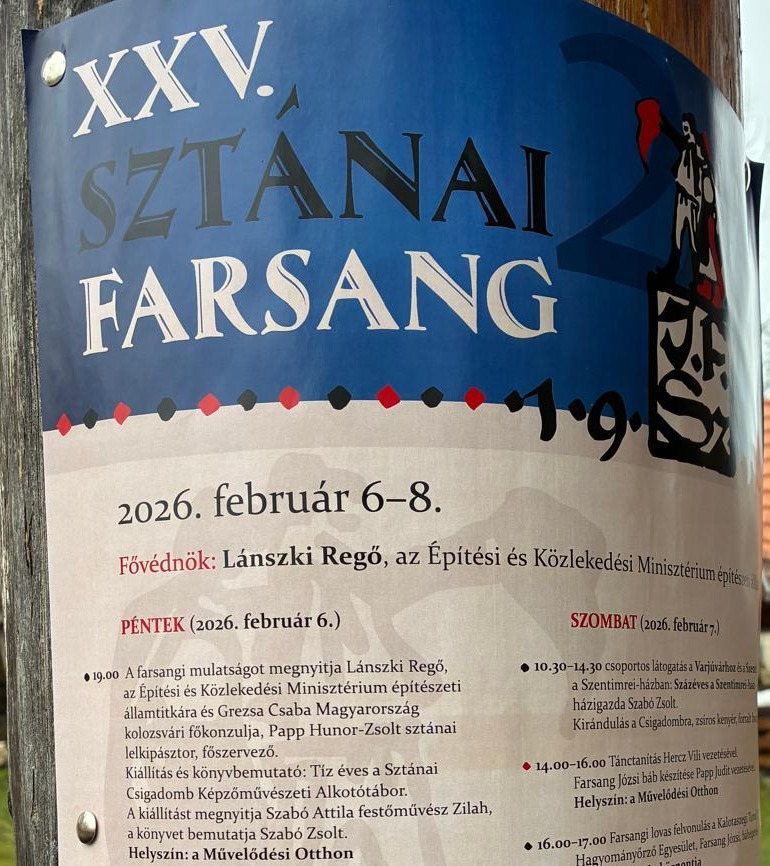 25. Sztánai farsang. Meghívott vendégek: a Debreceni Népi Együttes és a Tokos Zenekar.