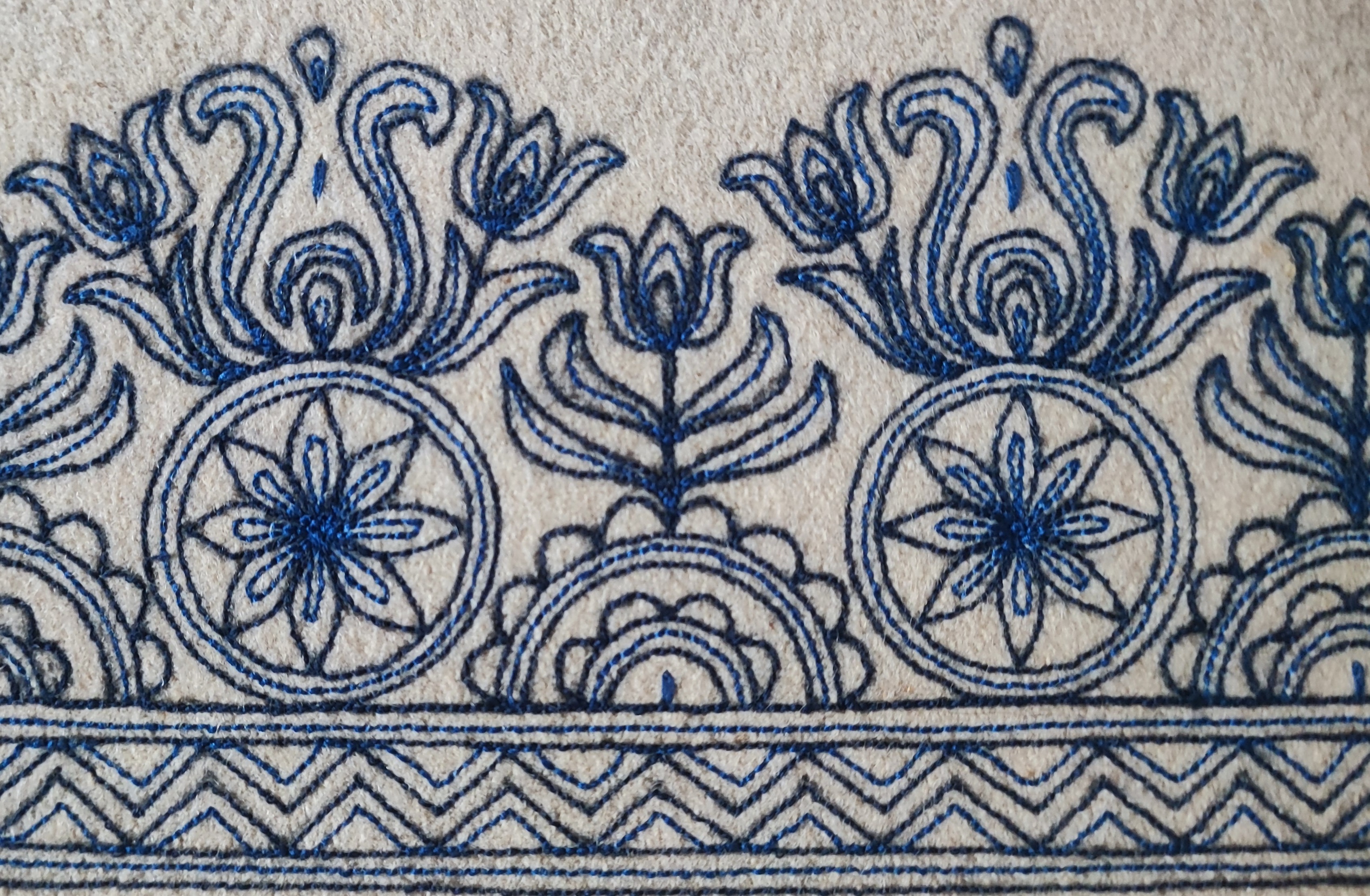 A bakonyi szűrök motívumkincséből táplálkozó nemezkabátot készítettem.